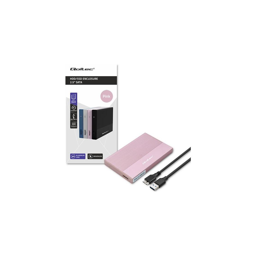 QOLTEC 52279 Kotelo / SSD HDD 2.5-asema / SATA / USB 3.0 / Super nopeus 5Gb/s / 2TB / Pinkki / Vaaleanpunainen QOLTEC 52279 Kotelo / SSD HDD 2.5-asema / SATA / USB 3.0 / Super nopeus 5Gb/s / 2TB / Pinkki / Vaaleanpunainen