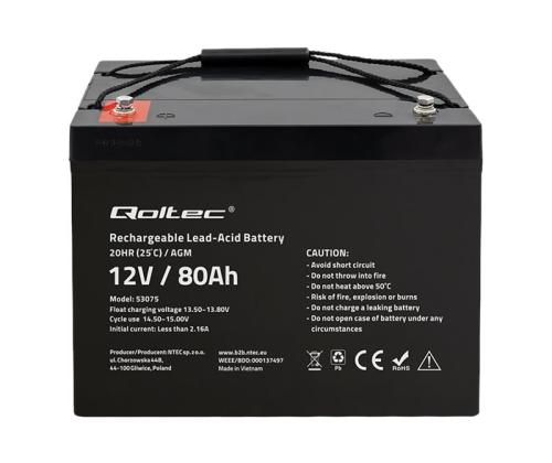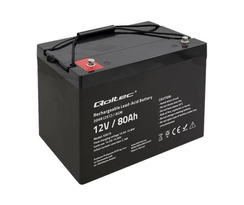 QOLTEC 53075 AGM battery 12V 80Ah QOLTEC 53075 AGM battery 12V 80Ah