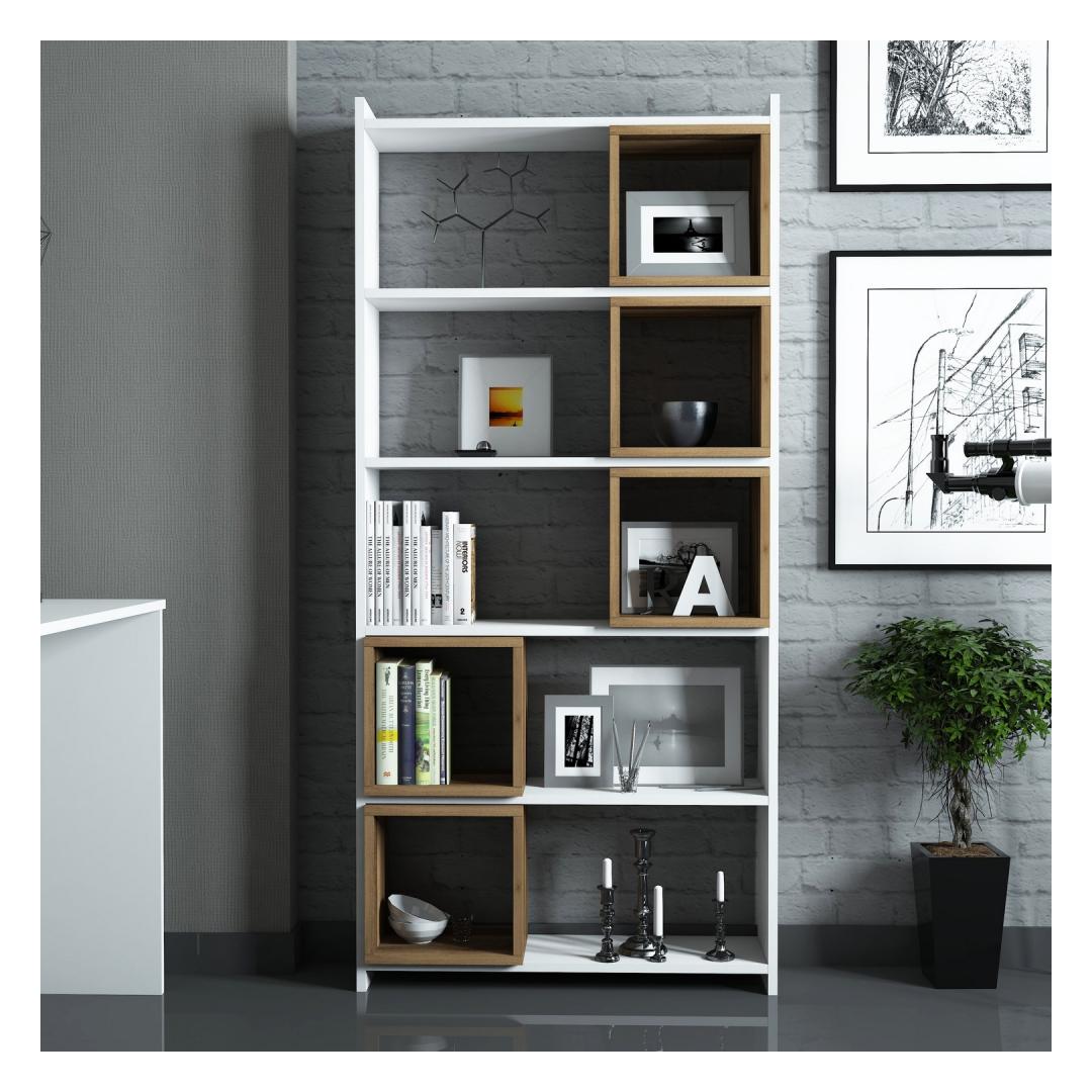 Raamaturiiul Box - White, Walnut