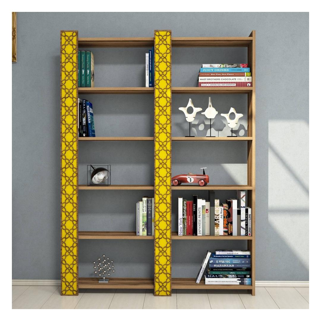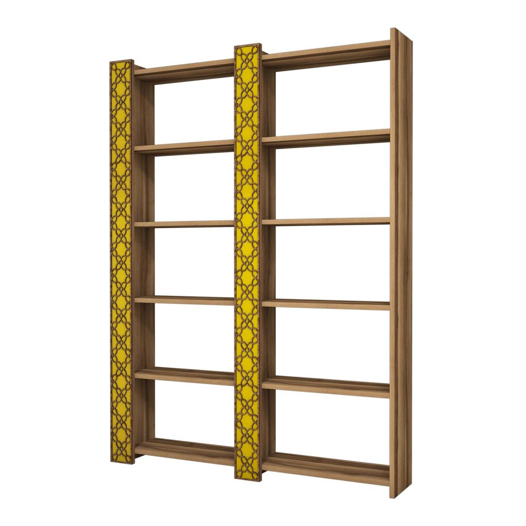 Raamaturiiul City 2 - Walnut, Yellow