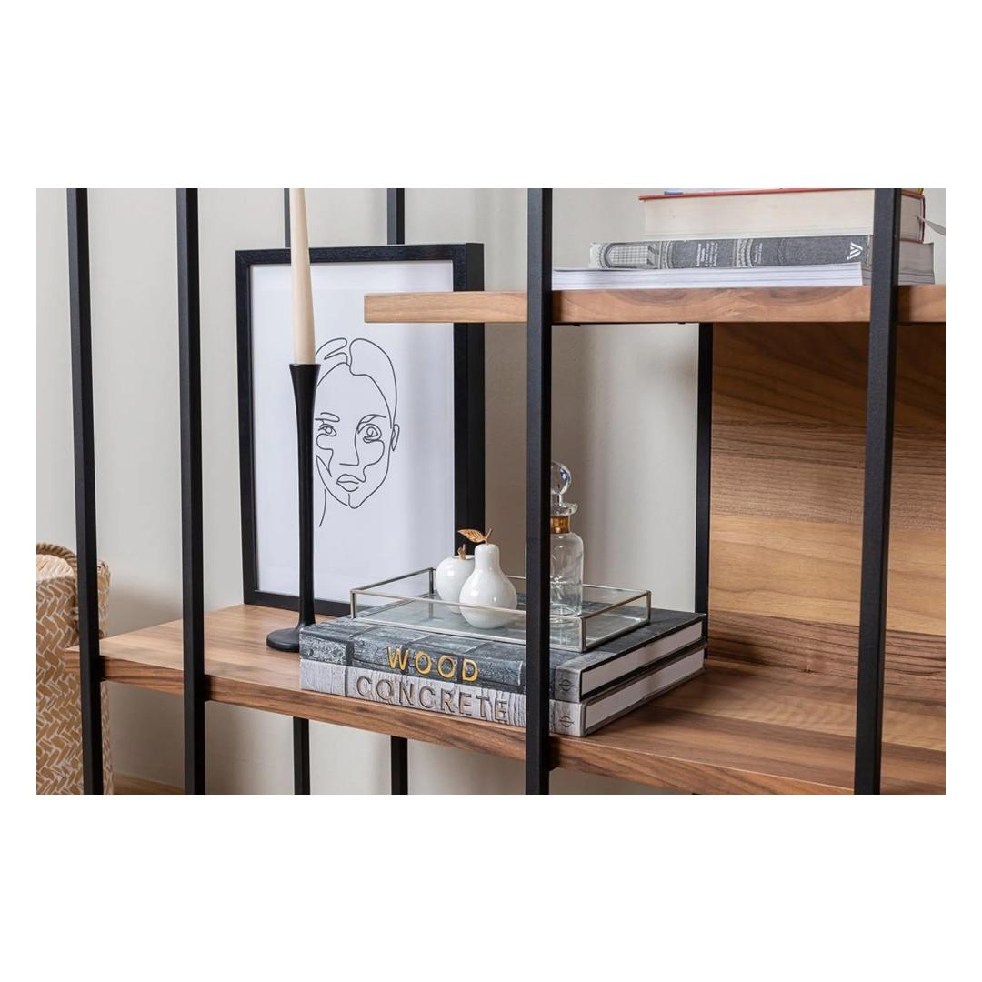 Muutke oma ruumi elegantse ja funktsionaalse pähklipuust raamaturiiuligaLooge paeluv ja korrastatud ruum meie peen pähklipuust raamaturiiuliga. See vapustav mööblitükk on loodud lisama elegantsi ja rafineeritust igasse ruumi. Tänu oma elegantsetele metalljalgadele ja 100% melamiiniga kaetud puitlaastplaadist konstruktsioonile ei ole see raamaturiiul mitte ainult visuaalselt ahvatlev, vaid ka vastupidav.Vabastage oma loovus ja esitlege oma kollektsiooniKui olete innukas lugeja, kunstikoguja või soovite lihtsalt oma lemmikraamatuid eksponeerida, pakub meie pähklipuust raamaturiiul täiuslikku platvormi. Tänu oma avaratele riiulitele ja rohkele mahutavusele saate uhkelt eksponeerida oma raamatuid, dekoratiivseid esemeid ja kallid mälestused. Laske oma loovusel vallanduda ja kureerige personaalne väljapanek, mis peegeldab teie unikaalset stiili. Välistage oma sisekujundust pähklipuu ajatu ilugaSelle raamaturiiuli rikkalik ja soe pähklipuu värvus täiendab vaevata iga sisekujundust. Selle mitmekülgne toon lisab nii moodsatele kui ka traditsioonilistele ruumidele rafineeritust ja elegantsust. Olenemata sellest, kas paigutate selle elutuppa, magamistuppa või kodukontorisse, sulandub see raamaturiiul sujuvalt teie olemasoleva mööbliga ja parandab teie ruumi üldist esteetikat. Tehnilised üksikasjad:Materjal: Materjal: Materjal: Materjal: Materjal: Materjal: Materjal: Materjal: materjal: 100% melamiiniga kaetud puitlaastplaatJalad: Metallist jalad lisavad stabiilsust ja vastupidavustMõõdud: Laius: 170 cm, kõrgus: 180 cm, sügavus: 35 cm.Värv: PähklipuuElustage oma ruumi ja tõstke oma sisekujundust meie pähklipuust raamaturiiuliga. Võtke omaks stiili ja funktsionaalsuse täiuslik kombinatsioon ning looge lummav väljapanek, mis jätab külalistele püsiva mulje. Tellige kohe ja kogege meie pähklipuust raamaturiiuli muutvat jõudu! Värv: Walnut