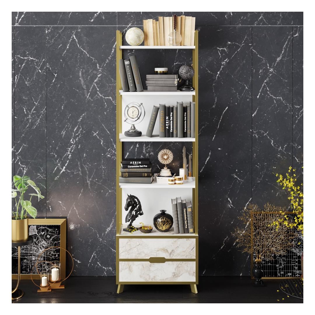Looking to add a touch of elegance and sophistication to your living space? Look no further than our modern and glamorous bookshelf. With its sleek design and marble-inspired finish, this bookshelf is sure to become the centerpiece of any room.