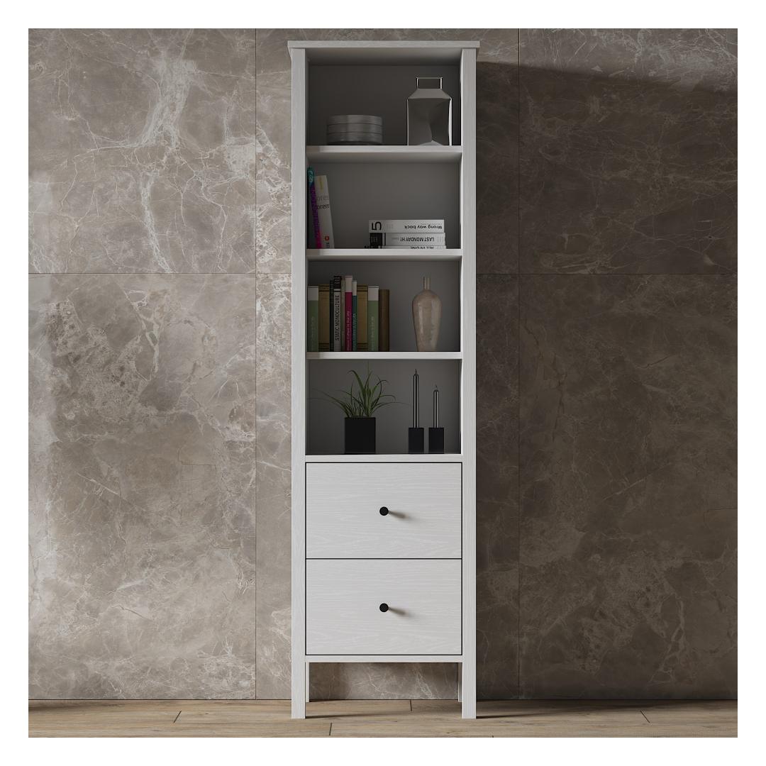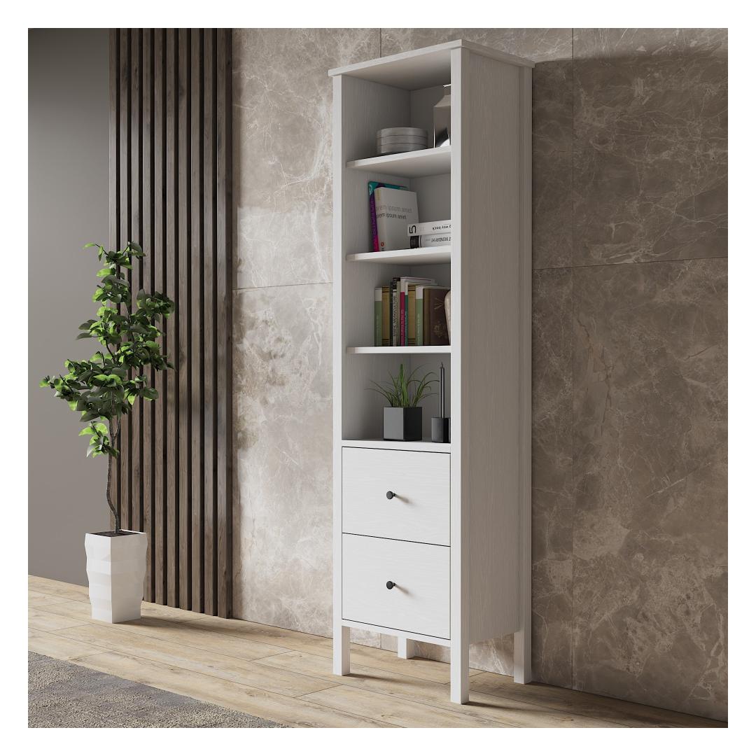Transform your living space with our stunning Wooden and White Bookshelf. This bookshelf is not just a piece of furniture, but a statement of style and sophistication. Its sleek design and elegant color combination will instantly elevate the look of any room in your home.