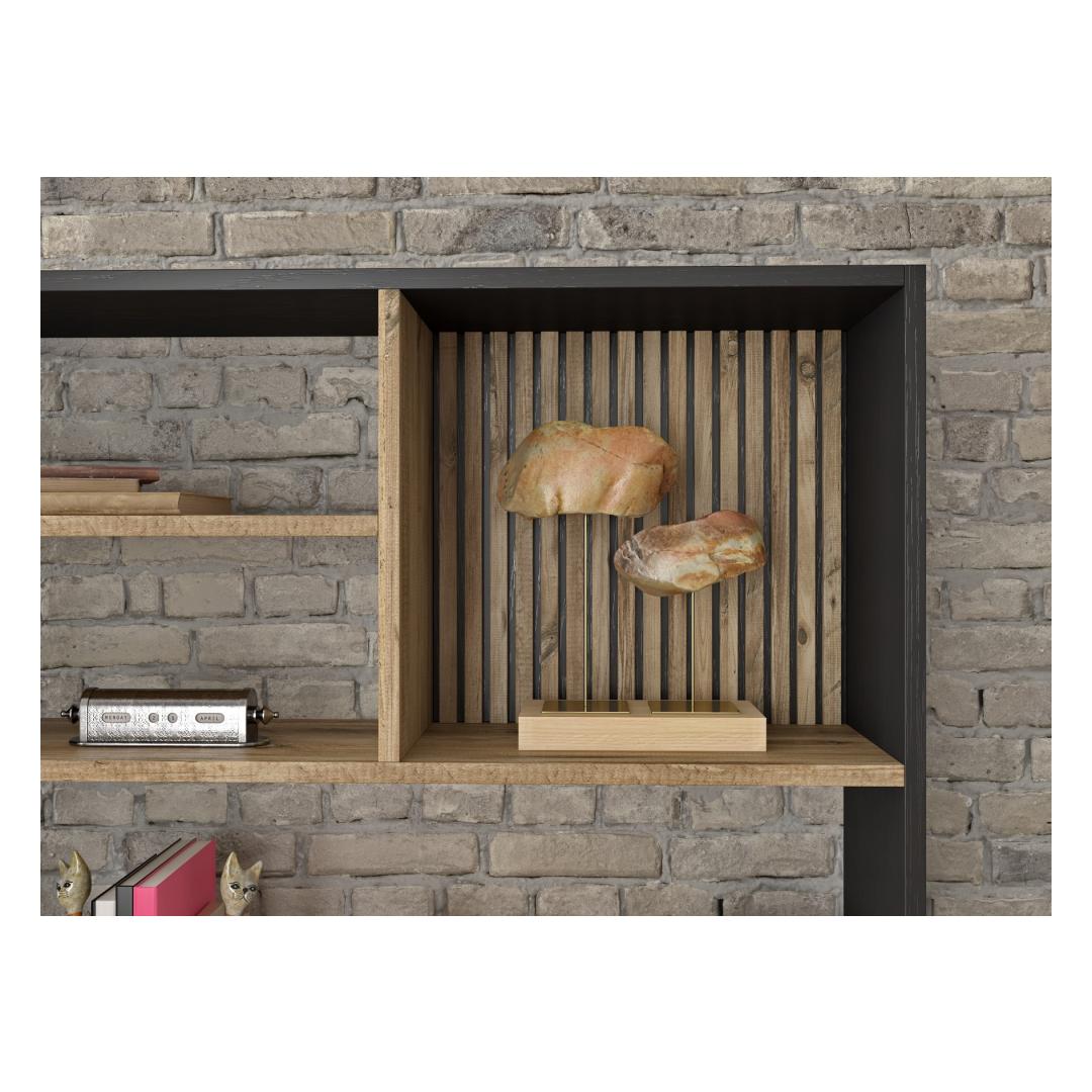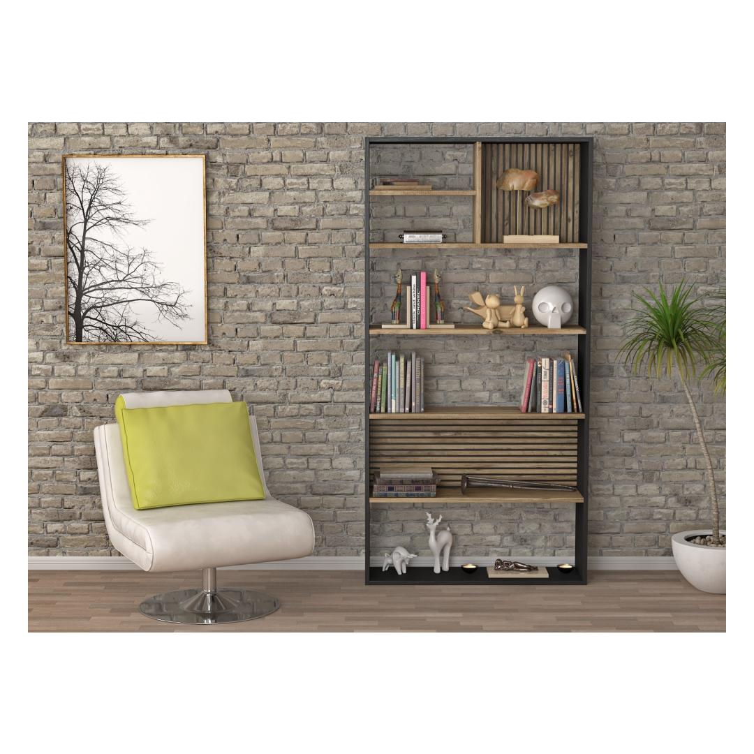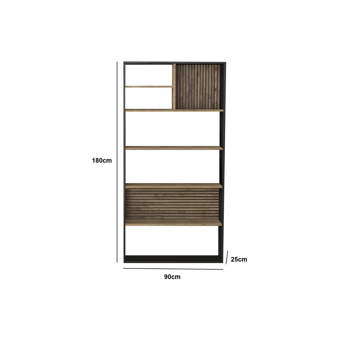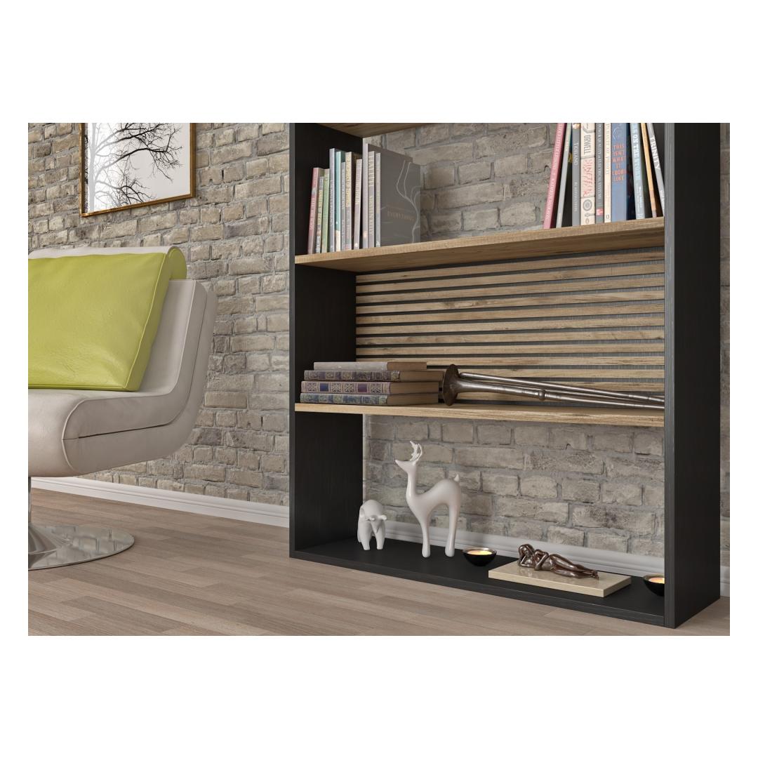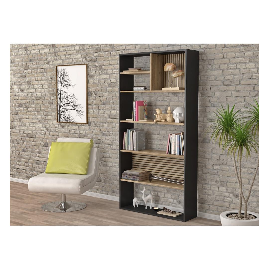 The combination of wooden, black, and Atlantic Pine colors gives this bookshelf a modern and sophisticated look that will complement any decor. Whether you prefer a minimalist aesthetic or a more eclectic style, this bookshelf is sure to enhance your space.