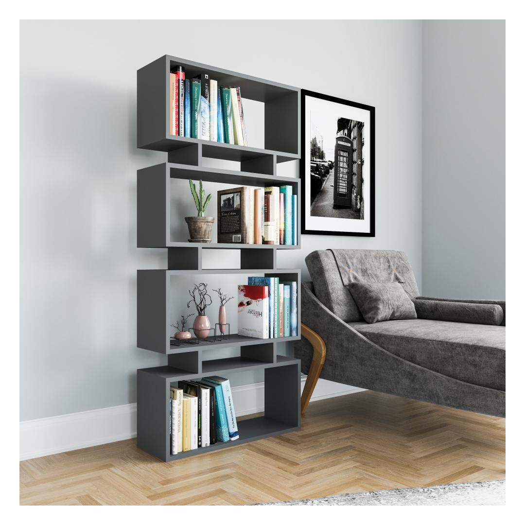 Are you tired of cluttered and disorganized spaces? Upgrade your home or office with our stunning bookshelf that combines functionality and style. With its sleek design and solid anthracite color, this bookshelf is guaranteed to add a touch of elegance to any room.