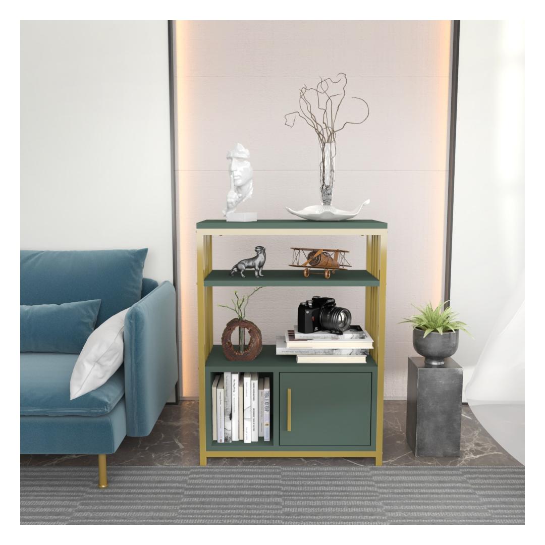 Introducing our exquisite bookshelf, a masterpiece that will elevate your home decor to new heights. Crafted with utmost precision and attention to detail, this bookshelf is designed to create a lasting impression. Its stunning combination of green and gold colors adds a touch of sophistication and luxury to any room.