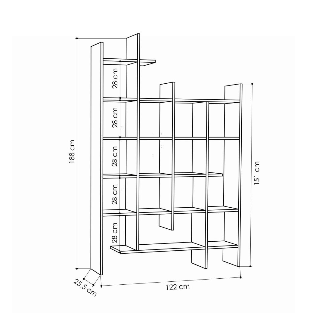 This bookshelf can be easily fixed to the wall for added stability and safety. With a width of 122cm, height of 188cm, and depth of 25.5cm, this bookshelf is the perfect size for any room in your home.
