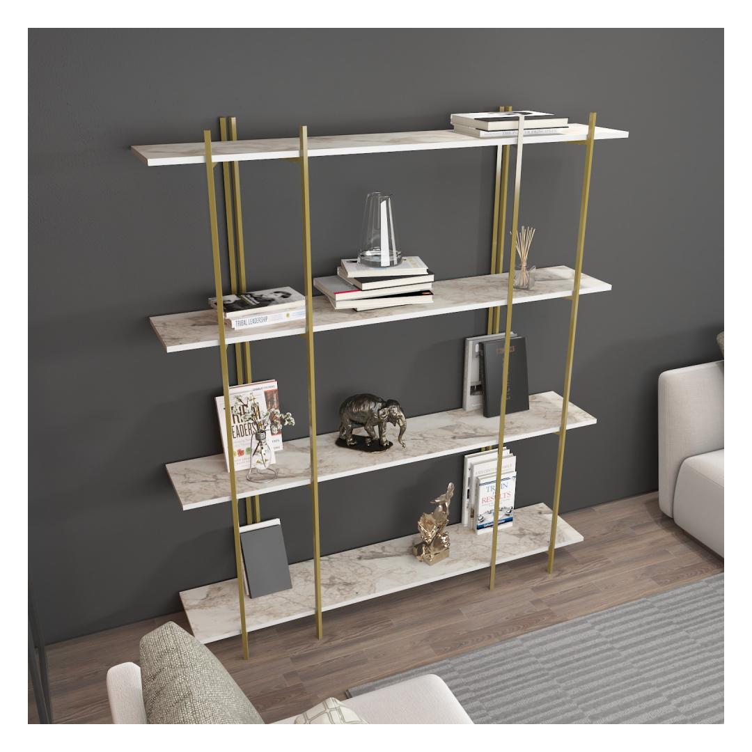With its sleek and modern design, this bookshelf effortlessly blends into any interior decor, adding a touch of opulence to your home. The combination of the pristine white and luxurious gold colors creates a captivating visual appeal that is sure to impress your guests and leave them in awe.