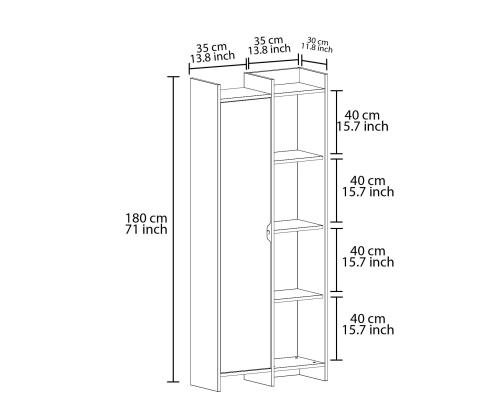 Width: 70 cm Height: 180 cm Depth: 30 cm