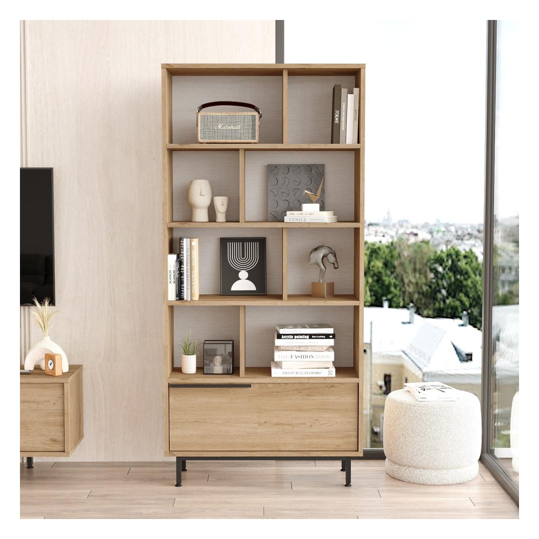 Transformeeri oma ruumi elegantse ja funktsionaalse raamaturiiuligaKas olete väsinud segastest ruumidest ja korrastamata raamatutest? ärge otsige edasi! meie raamaturiiul on ideaalne lahendus, et tuua oma koju korda ja stiili. Tänu oma elegantsele disainile ja kvaliteetsetele materjalidele ei täiusta see raamaturiiul mitte ainult teie ruumi esteetikat, vaid pakub ka piisavalt ruumi kõigile teie lemmikraamatutele ja dekoratiivsetele esemetele.Võrratu vastupidavus ja kvaliteetSee raamaturiiul on valmistatud 100% melamiiniga kaetud puitlaastplaadist, mis on ehitatud kestma. 18 mm paksus tagab tugevuse ja stabiilsuse, mis võimaldab teil oma raamatuid ja asju kindlalt välja panna. Pähklipuidust värv lisab rafineeritust, muutes selle igasse tuppa ajatuks täienduseks. Looge igas ruumis fookuspunktOlenemata sellest, kas paigutate selle oma elutuppa, magamistuppa või kodukontorisse, muutub see raamaturiiul koheselt ruumi keskpunktiks. Selle suured mõõtmed on 83. 9 cm laius, 175. 6 cm kõrgus ja 29. 5 cm sügavus pakuvad piisavalt ruumi teie raamatukollektsiooni, perepiltide ja armastatud mälestuste esitlemiseks. Tõstke oma stiili metalljalgadegaRaamaturiiul ei ole mitte ainult funktsionaalne, vaid ka esteetiliselt meeldiv. Stiilsed metalljalad lisavad moodsat puudutust, tõstavad üldist disaini ja tagavad stabiilsuse. Pähkli värvi ja metalljalgade kombinatsioon loob harmoonilise segu elegantsist ja kaasaegsest stiilist. Tehnilised üksikasjad:Materjal: materjal: 100% melamiiniga kaetud puitlaastplaatPaksus: 18 mmLaius: 83. 9 cmKõrgus: 175. 6 cmSügavus: 29,5 cmMetallist jalad lisavad stabiilsustVärv: PähklipuuÄrge jätke kasutamata võimalust muuta oma ruumi selle elegantse ja funktsionaalse raamaturiiuliga. Tellige kohe ja kogege rõõmu segadustevabast ja stiilsest kodust! Värv: Walnut