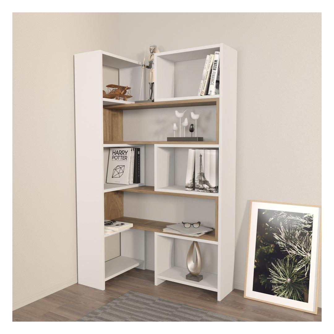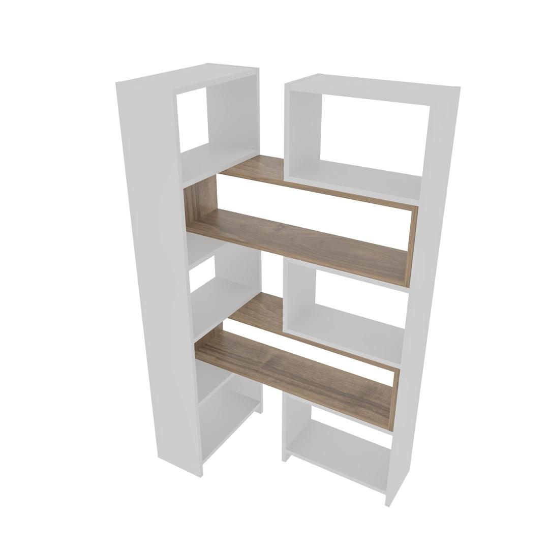 The bookshelf is designed with a harmonious blend of white and walnut colors, creating a sophisticated and timeless look that effortlessly complements any existing furniture or color scheme. This versatile color combination adds a touch of elegance to your space, making it a focal point in any room.