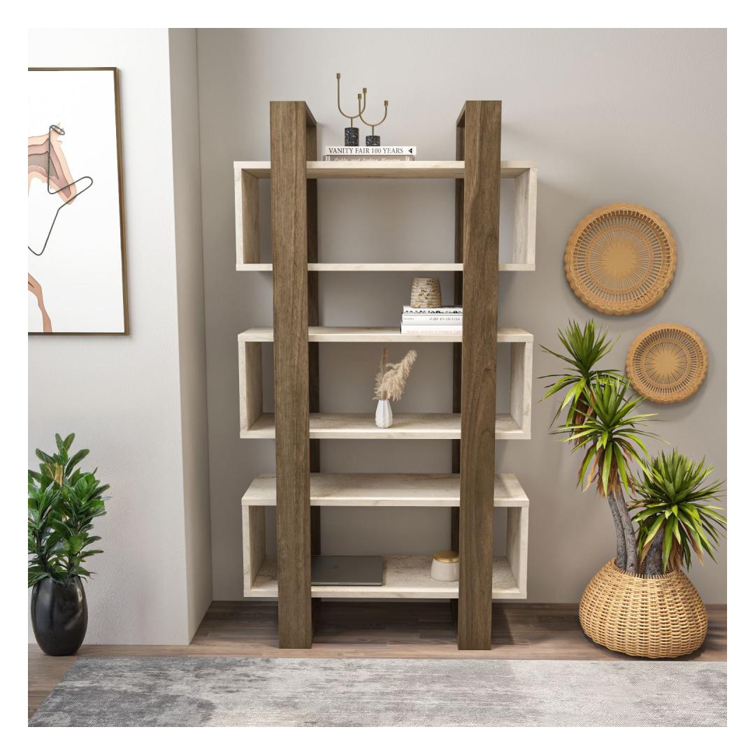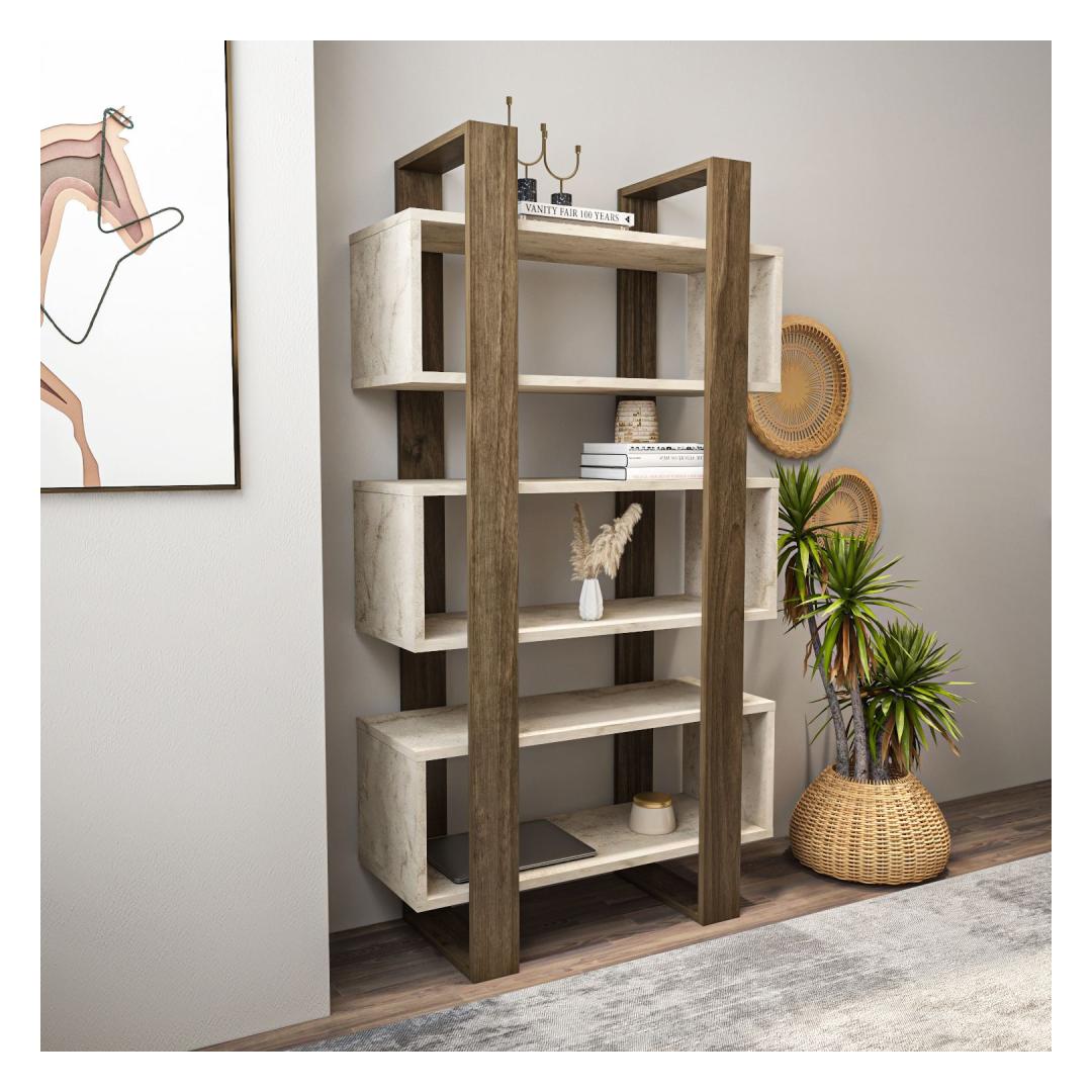 Raamaturiiul Reina - Walnut, Travertine