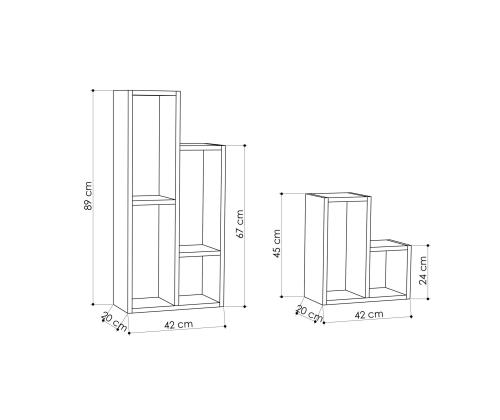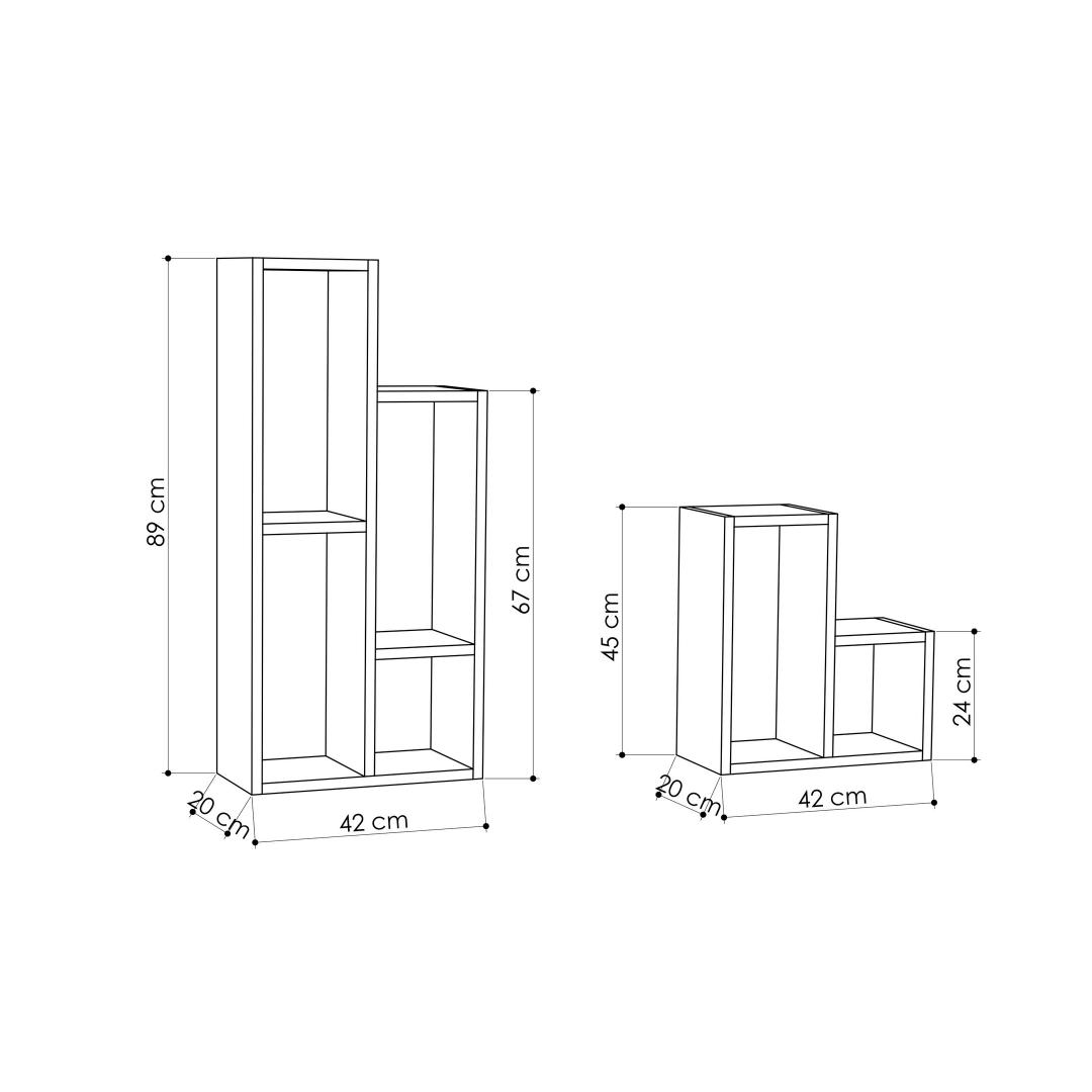 Kas oled väsinud segadusest ja organiseerimata ruumidest? Ütle hüvasti kaosale ja tere organiseeritusele meie kauni raamaturiiuliga! See raamaturiiul ei ole lihtsalt mööbliese, vaid stiili ja funktsionaalsuse väljendus.Elegantne disain kaasaegsetele kodudeleSelle voolujoonelise ja modernse disainiga raamaturiiul tõstab koheselt iga ruumi ilmet. Tugev valge värv lisab elegantsi, samas kui innovatiivne kontseptsioon toob sinu ruumi värskuse.Funktsionaalne ja mitmekülgneMitme riiuliga varustatud raamaturiiul pakub piisavalt hoiuruumi kõigi sinu raamatute, dekoratsioonide ja muu jaoks. 100% melamiinkattega puitlaastplaat tagab vastupidavuse ja pikaealisuse, samas kui võimalus see seina kinnitada lisab stabiilsust ja ohutust.Muuda oma ruumiMuuda oma elutuba, magamistuba või kodukontor selle mitmekülgse raamaturiiuliga. Olgu sa raamatuhuviline, kes otsib stiilset viisi oma kollektsiooni eksponeerimiseks, või lihtsalt vajad lisahoiuruumi, see raamaturiiul on ideaalne lahendus.Ära oota enam, et tuua oma koju korda ja stiili. Tellige meie raamaturiiul täna ja koge, millist erinevust see sinu ruumis teha suudab!Tehnilised andmed:Materjal: 100% melamiinkattega puitlaastplaatPaksus: 18 mmLaius: 42 cmKõrgus: 89 cmSügavus: 20 cm (1 tükk)Laius: 42 cmKõrgus: 45 cmSügavus: 20 cm (1 tükk)Riiuli kandevõime: 15 kgVärv: Valge Värv: White
