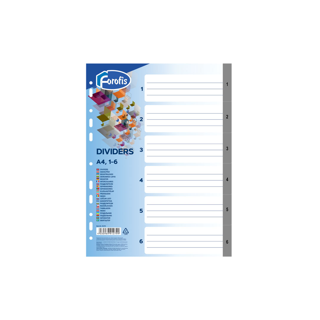 Välilehdet A4 1-5 harma muovia