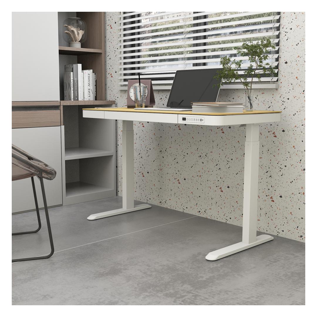 Säädettävä pöytä ERGO 1-moottori 120x60xK72-121cm, valkoinen/tammi