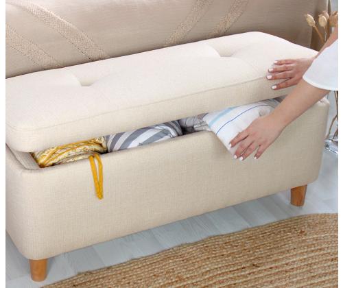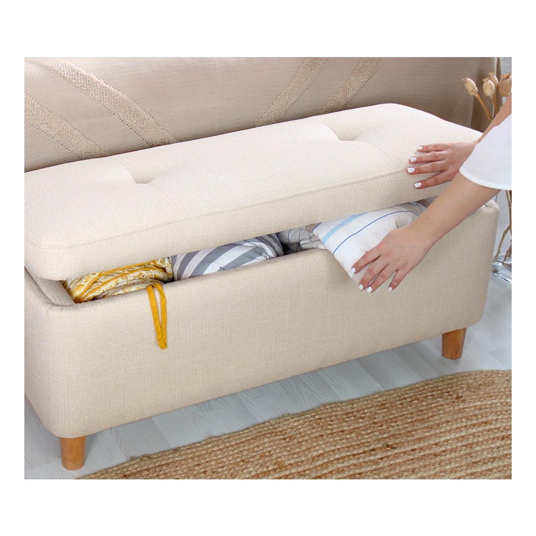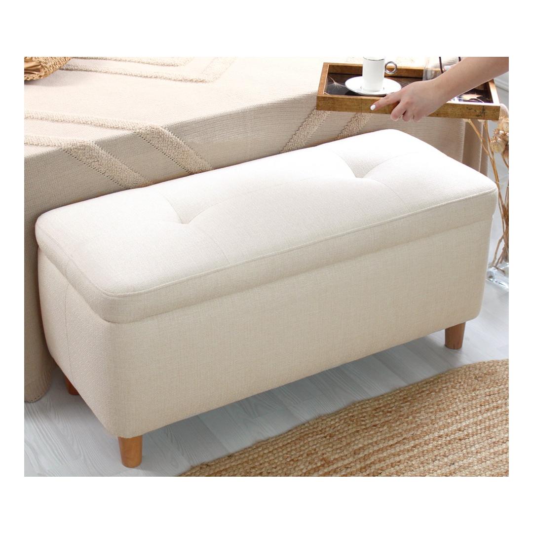 Koge ülimat mugavust ja stiili meie luksusliku pouffe'igaMuutke oma eluruum lõõgastumise paradiisiks meie suurepärase pouffe'iga. See pouffe on valmistatud ülima hoole ja tähelepanuga, et pakkuda teile ülimat mugavust ja stiili. Lõbutsege võrratu mugavusesMeie pouffe on valmistatud 50% puuvilla ja 50% lina segust, mis pakub pehmet ja mahlakat istumiskogemust. Vajutage selle luksuslikku embusse ja tundke, kuidas stress pärast pikka päeva lõõgastudes ära sulab. 35 dns ortopeediline käsn tagab teie kehale optimaalse toe, leevendab survetunnuseid ja soodustab õiget kehahoiakut.Kõrgendage oma sisekujundust ajatu elegantsigaMeie pouffe, mis on kreemikat värvi, sobitub vaevata mis tahes interjööri stiiliga, lisades teie ruumile rafineeritust. Pöögipuidust jalad ei paku mitte ainult tugevat tuge, vaid suurendavad ka pouffi üldist esteetilist atraktiivsust. Täiuslik suurus mitmekülgseks kasutamiseksMeie pouff on 100 cm laiune, 45 cm kõrge ja 41 cm sügavune, mis pakub piisavalt ruumi, et saaksite end välja sirutada ja lõõgastuda. Selle kirstu suurus 90cm laiuses, 38cm kõrguses ja 38cm sügavuses pakub mugavat hoiukohta teie asjadele, hoides teie eluruumi korras ja organiseerituna. Tehnilised üksikasjad:Materjal: Materjal: Materjal: Materjal: Materjal: Materjal: Materjal: Materjal: 50% puuvill / 50% linaKäsna paksus: 8cmJalad: pöögipuuPouffe Suurus: Puidust puupuit: Laius: 100cm, kõrgus: 45cm, sügavus: 41cm.Kirstu suurus: Laius: 90cm, kõrgus: 38cm, sügavus: 38cm.Värv: KreemjasHellitage meie luksusliku pouffe'iga ülimat mugavust ja stiili. Tellige kohe ja kogege oma kodus täiuslikku segu elegantsist ja lõõgastumisest. Värv: Cream