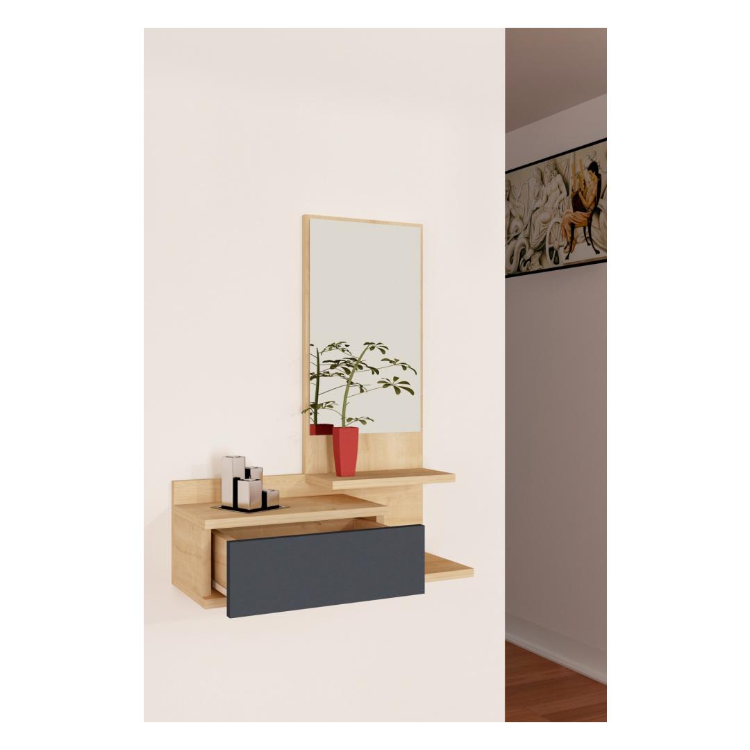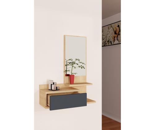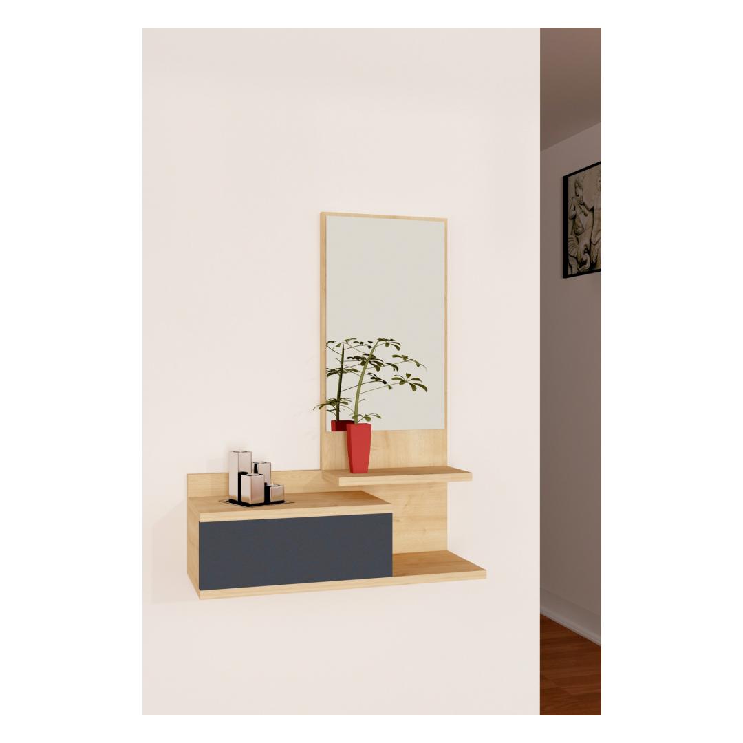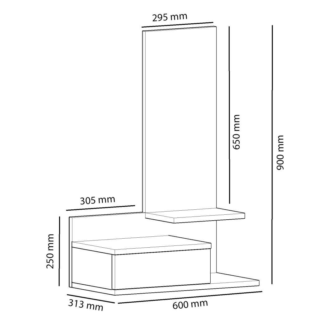 Transformeeri oma sissepääsukorrus elegantse ja funktsionaalse esiku stendigaJäta külalistele püsiv mulje kohe, kui nad teie koju astuvad, meie uimastava eesruumide stendiga. See 100% melamiiniga kaetud puitlaastplaadist valmistatud stend ei ole mitte ainult vastupidav, vaid ka rafineeritud ja stiilne. Kõrgendage oma sisekujundust modernsuse puudutusegaÜhevärviline ja moodsa disainiga saalihoidja lisab uudsust igasse ruumi. Tamme- ja antratsiitvärvide kombinatsioon loob visuaalselt atraktiivse kontrasti, mis sobitub vaevata iga interjööri stiiliga. Püsige organiseerituna rohke hoiuruumigaMeie saalihoidja, millel on avar sahtli ja arvukad riiulid, pakub piisavalt hoiuruumi kõigile teie hädavajalikele asjadele. Hoidke oma võtmed, post ja muud väikesed esemed kenasti organiseeritult ja kergesti ligipääsetavana. Välistage oma hommikupoolset rutiini mugava peegligaEsikoha statiiviga on kaasas peegel, mis ei lisa mitte ainult dekoratiivset puudutust, vaid täidab ka praktilist eesmärki. Valmistuge eelseisvaks päevaks hõlpsasti, kui kontrollite oma välimust peeglist, mis asub ideaalselt silmade kõrgusel. Lihtne paigaldamine ja mitmekülgne paigutusMeie saalihoidja saab hõlpsasti seinale kinnitada, tagades stabiilsuse ja ohutuse. Olenemata sellest, kas teil on väike sissepääs või avar fuajee, seda statiivi saab paigutada kõikjale, et maksimeerida funktsionaalsust ja stiili. Tehnilised üksikasjad:Materjal: Materjal: Materjal: Materjal: Materjal: Materjal: Materjal: Materjal: materjal: 100% melamiiniga kaetud puitlaastplaatPaksus: 18 mmLaius: 60 cmKõrgus: 90 cmSügavus: 31,3 cmPeegli suurus: Laius: 29. 5 cm, kõrgus: 65 cm.Sahtli suurus: Laius: 30. 5 cm, sügavus: 31. 3 cmVärv: Tamm ja antratsiitKontseptsioon: Värviline, kaasaegne - uudsus Värv: Oak Anthracite