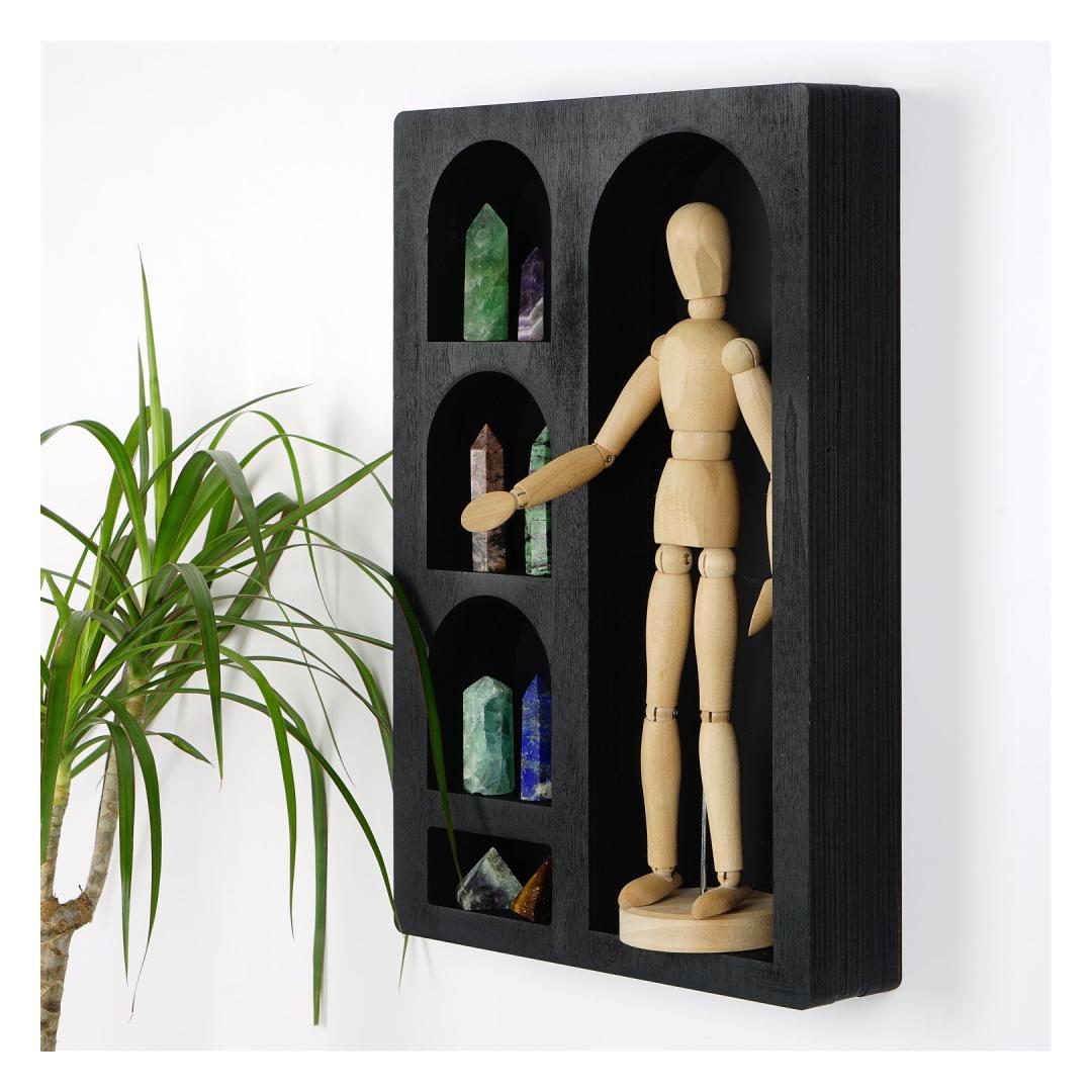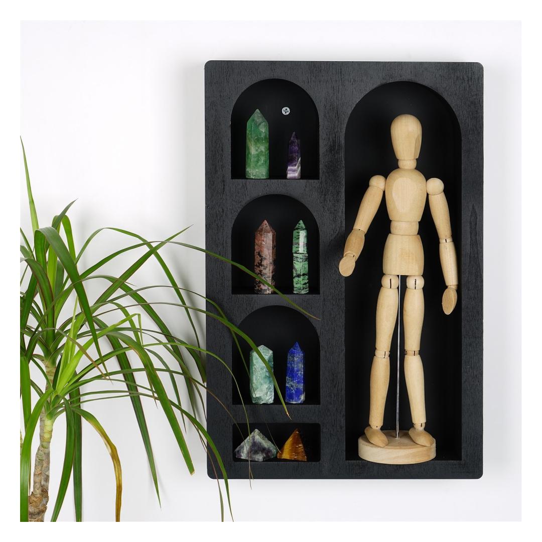 Installing this wall shelf is a breeze. It can be easily fixed to the wall, allowing you to create a personalized display in no time. Its compact size, with a width of 26 cm, height of 40 cm, and depth of 6 cm, makes it suitable for any room, whether it's your living room, bedroom, or office.