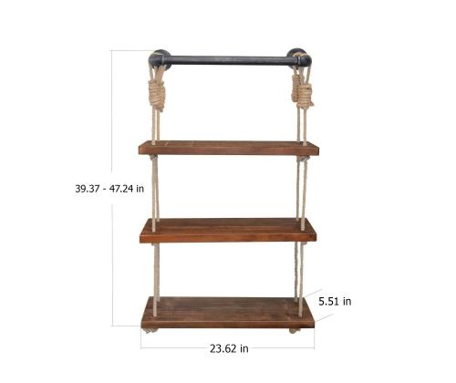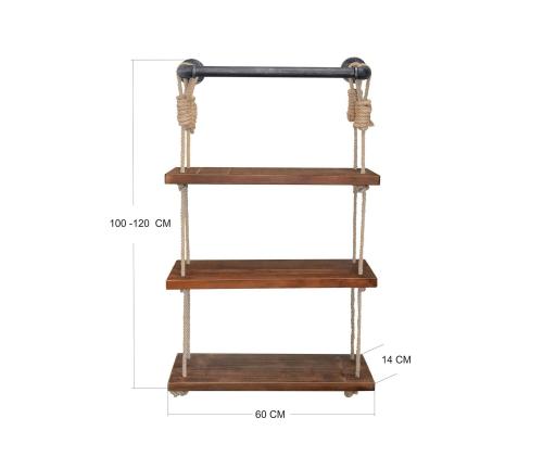 Made from 100% spruce wood, our wall shelf exudes warmth and elegance. The natural grain patterns and rich walnut color add a touch of sophistication to any space. The sturdy metal pipe provides durability and strength, ensuring that your belongings are securely displayed.