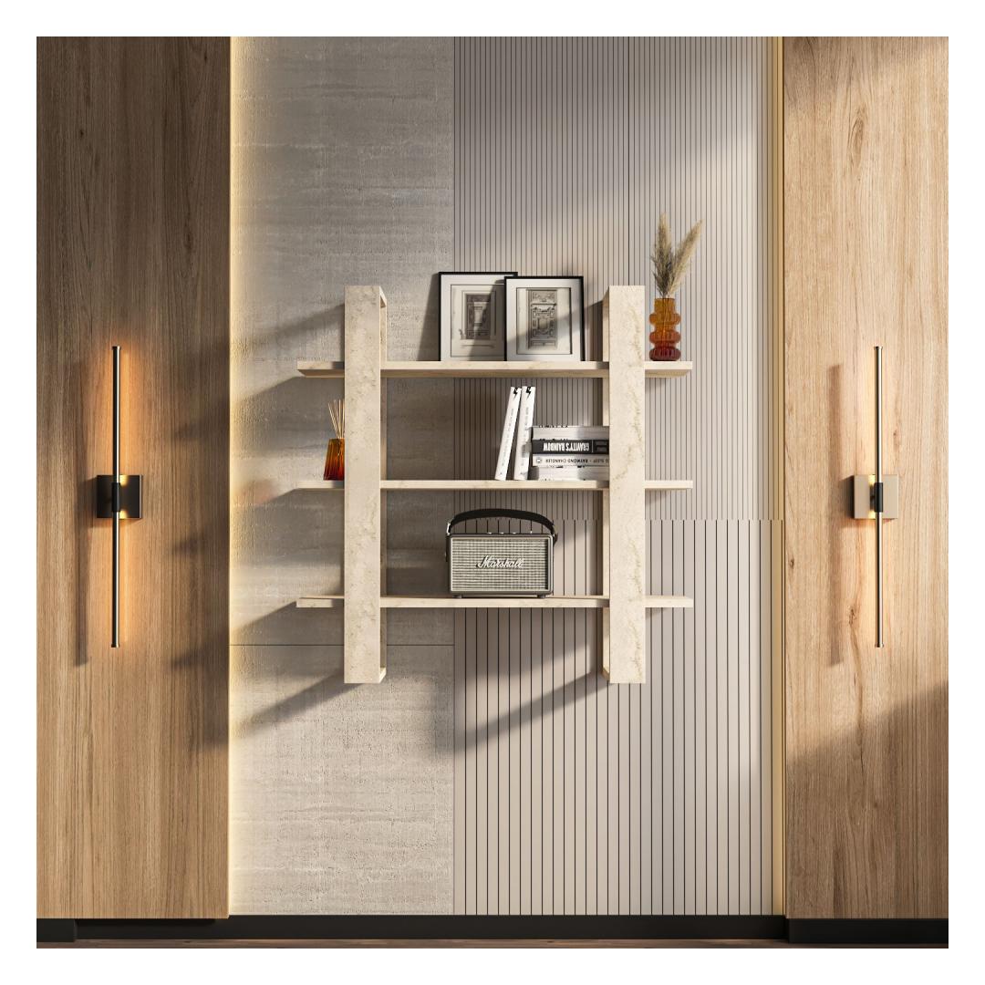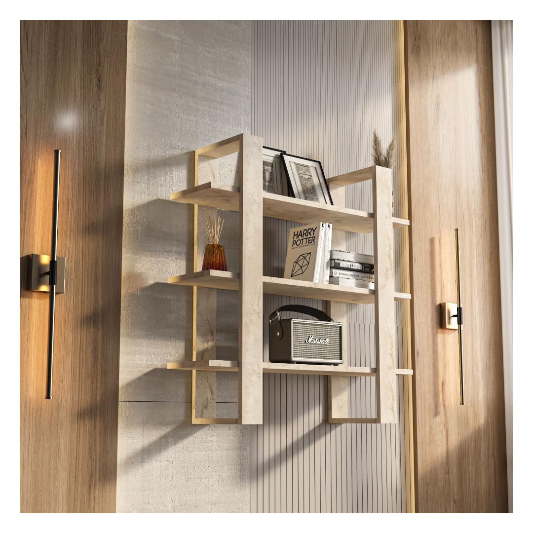 Transform your living space with our stunning Travertine Wall Shelf. This elegant piece is not just a shelf, but a statement of style and sophistication. The beautiful Travertine color will add a touch of luxury to any room, while the 100% melamine coated particle board ensures durability and longevity.