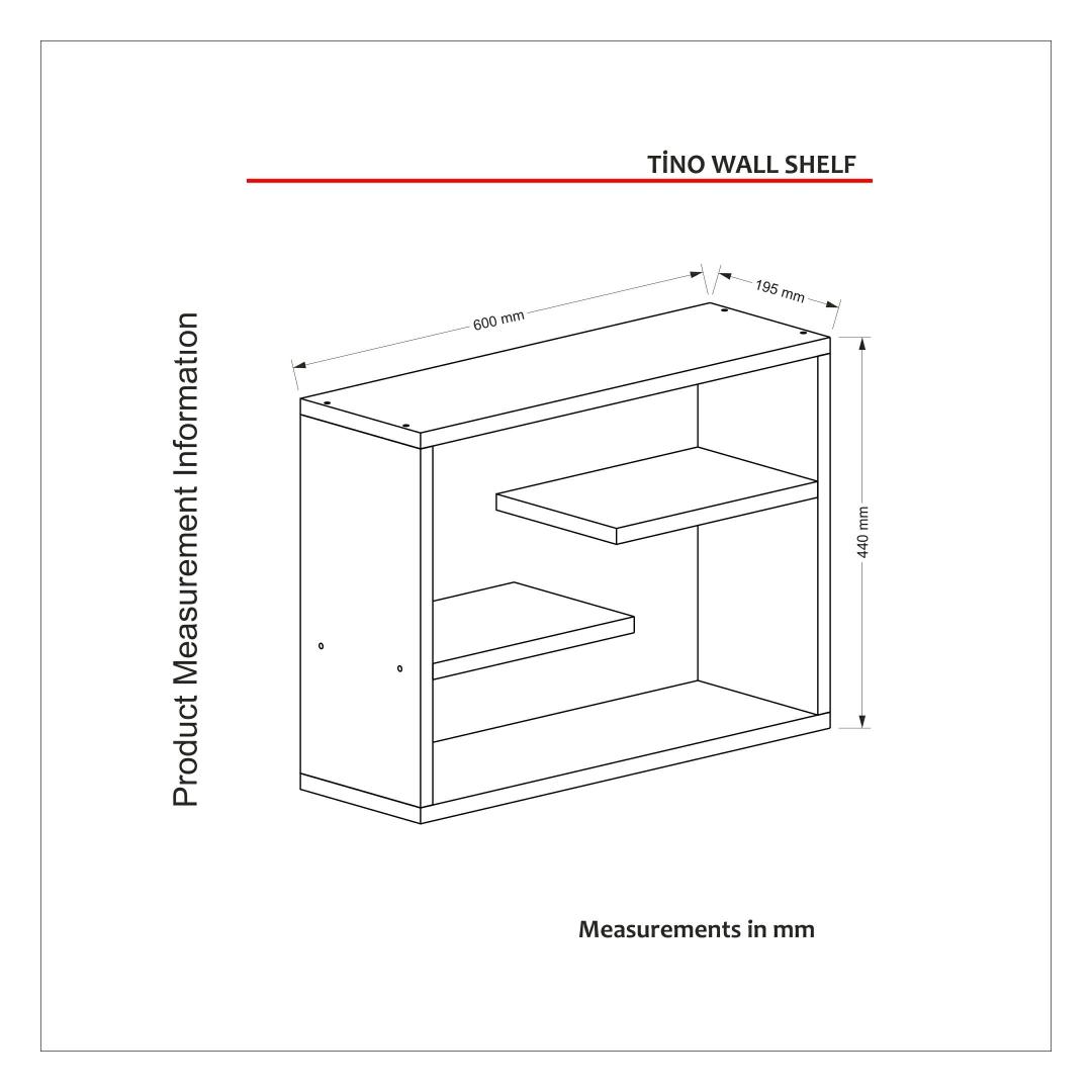 - Wall Shelf Size: Width: 60 cm, Height: 44 cm, Depth: 19.5 cm