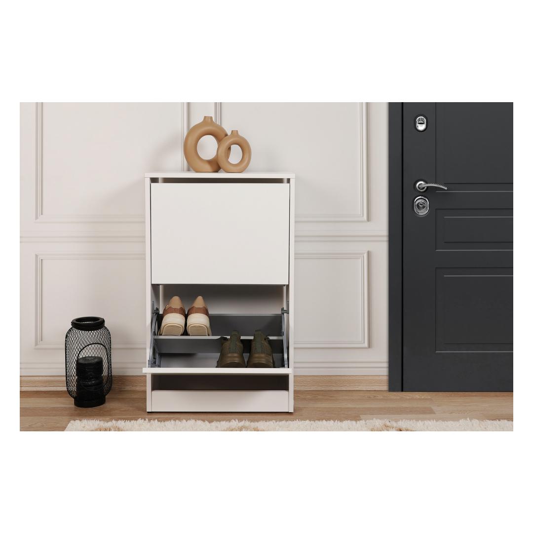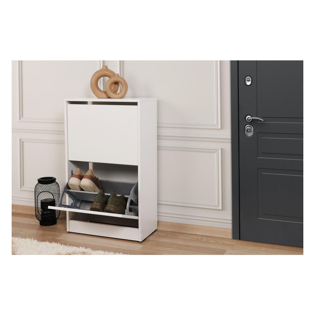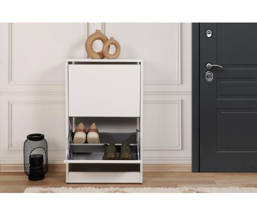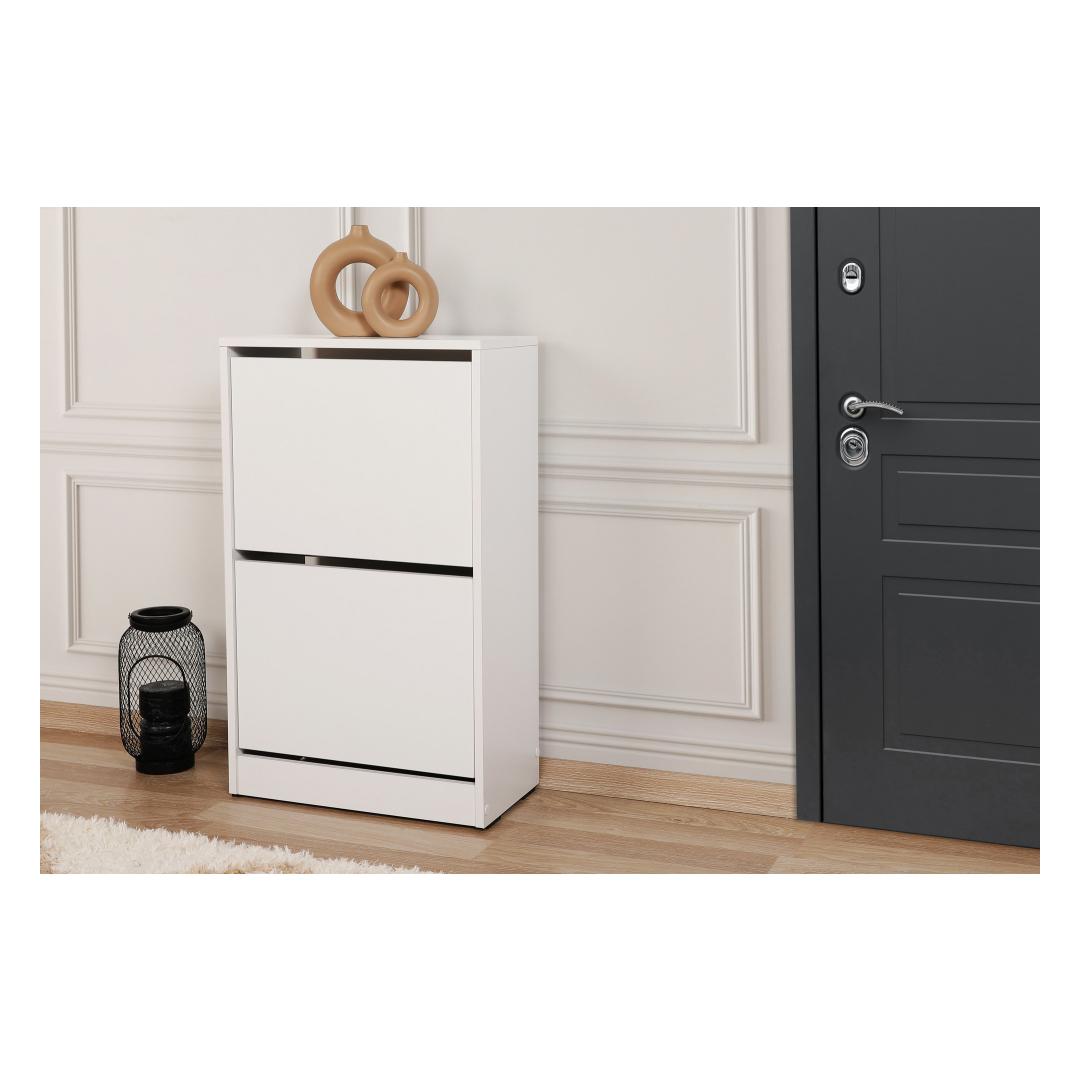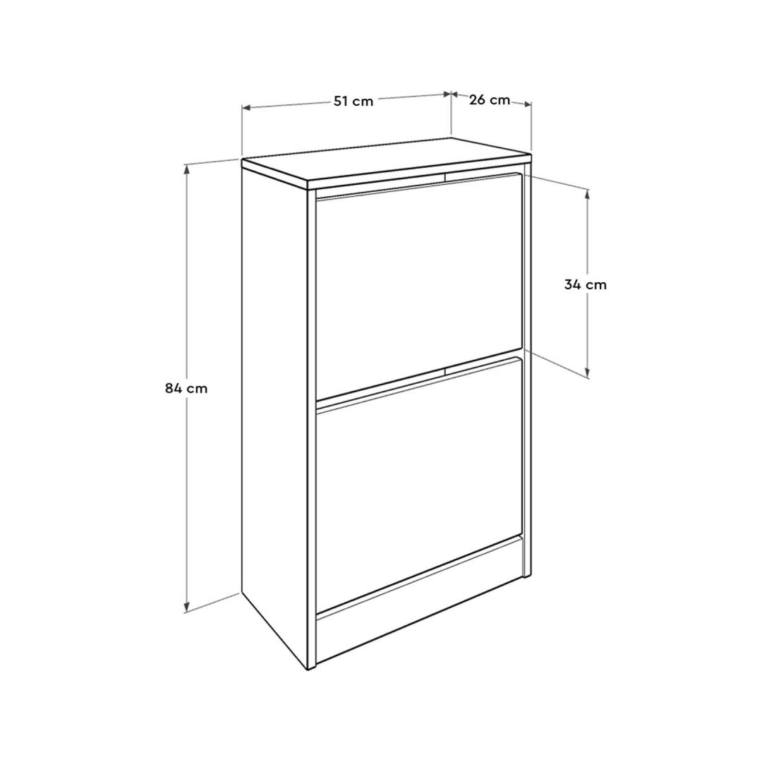 Organiseeri oma kingad stiilselt meie kingakapiga!Kas olete väsinud oma kingade üle komistamisest iga kord, kui sisenete oma koju? ärge otsige edasi! meie kingakapp on ideaalne lahendus, et hoida oma kingad korralikult organiseeritud ja kergesti ligipääsetavad. Oma elegantse ja moodsa disainiga lisab see elegantsi igasse tuppa. Kvaliteet ja vastupidavus garanteeritudMeie kingakapp on valmistatud 100% melamiiniga kaetud puitlaastplaadist, mis on ehitatud kestma. 16 mm paksus tagab tugevuse ja stabiilsuse, valge värvus lisab aga elegantsi. Võite olla kindel, et see kapp peab vastu ja hoiab teie kingad turvaliselt ja kindlalt. Maksimeerida oma ruumiMeie jalatsikapp on 51 cm lai, 84 cm kõrge ja 26 cm sügav, seega on see kompaktne, kuid samas ruumikas. Kaks sahtlit pakuvad piisavalt hoiuruumi, kusjuures sahtli kõrgus on 34cm, et mahutada erinevaid kingade suurusi. Ütle hüvasti segastele põrandatele ja tere korrastatud ja organiseeritud eluruumile. Muudatlik ja praktilineMeie kingakappi saab hõlpsasti seinale kinnitada, säästes väärtuslikku põrandapinda. Olenemata sellest, kas paigutate selle oma esikusse, magamistuppa või kappi, sulandub see sujuvalt igasuguse sisustusega. Valge värvus lisab elegantsi ja lihtsust, muutes selle mitmekülgseks täienduseks igasse koju. Tehnilised üksikasjad:Materjal: Materjal: Materjal: Materjal: Materjal: Materjal: Materjal: Materjal: materjal: 100% melamiiniga kaetud puitlaastplaatPaksus: 16mmLaius: 51cmKõrgus: 84cmSügavus: 26cmSahtli kõrgus: 34cmSahtlite arv: 2Saab kinnitada seinaleVärv: valge Värv: White