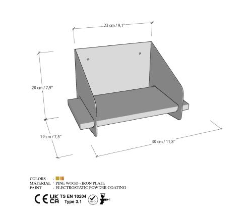 Width: 30 cm Height: 20 cm Depth: 19 cm
