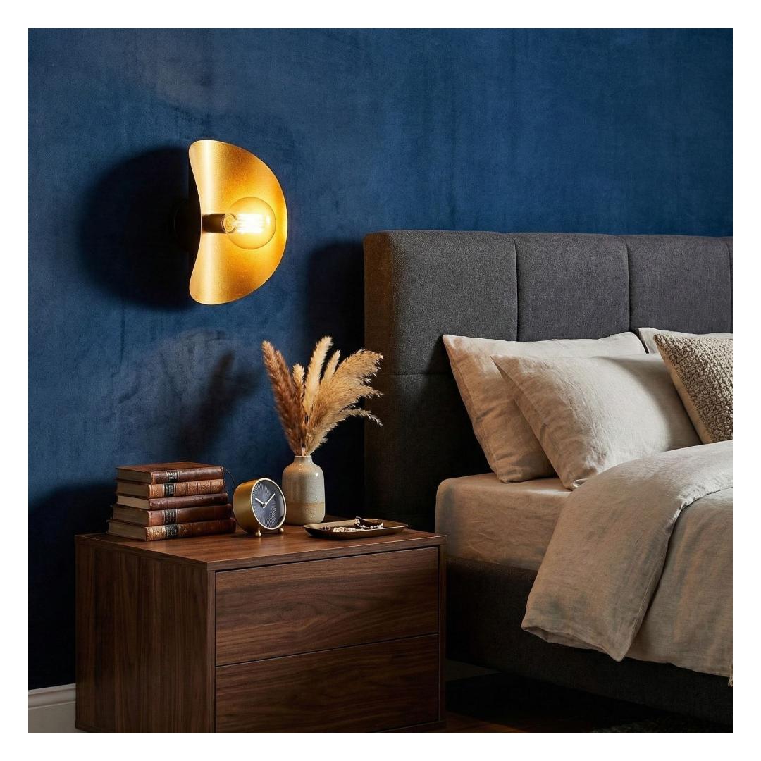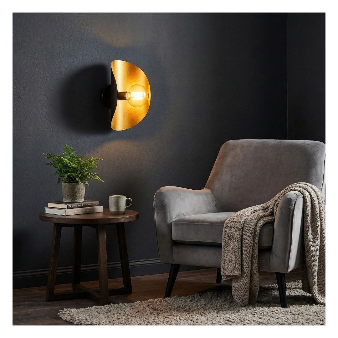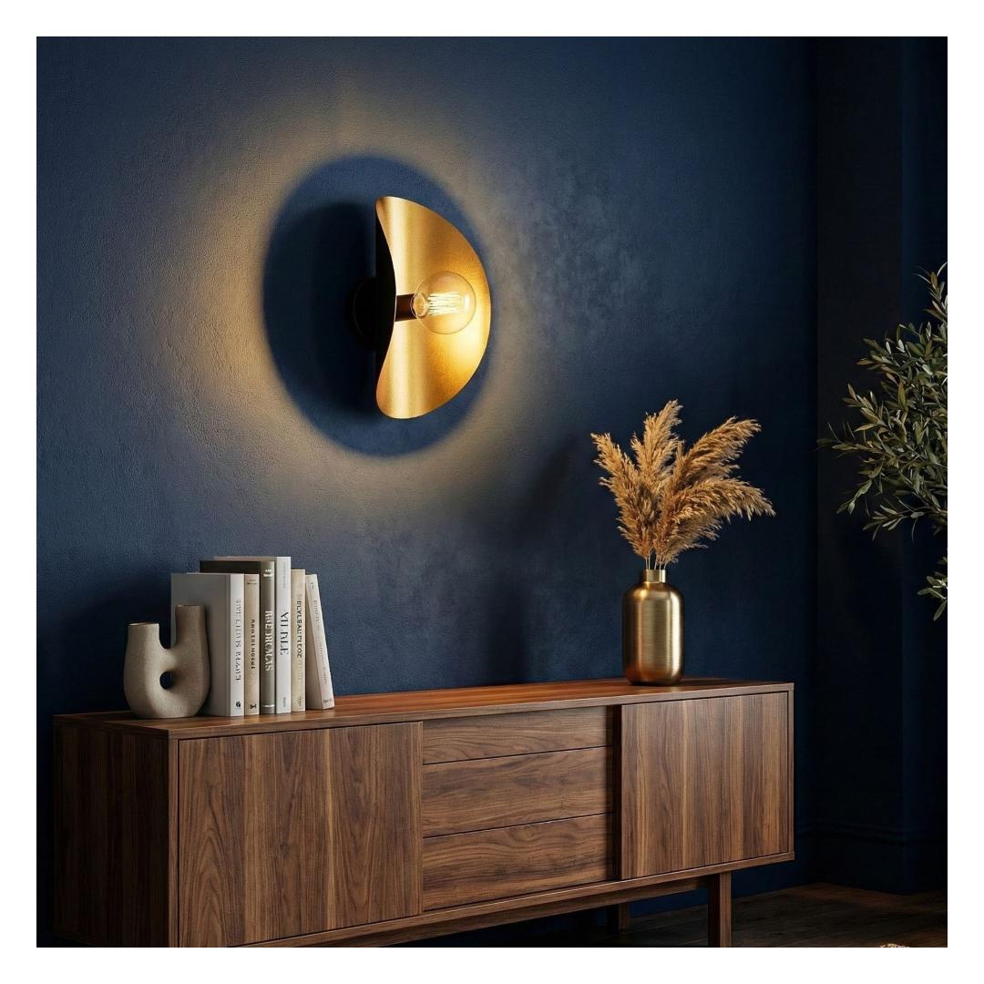 Muunna tilasi tyylikkäällä ja lumoavalla seinävalaisimellamme Paranna minkä tahansa huoneen tunnelmaa upealla seinävalaisimellamme. Metallirungosta valmistettu upea valaisin huokuu hienostuneisuutta ja tyyliä. Tyylikkään muotoilunsa ja moitteettoman ammattitaitonsa ansiosta se sopii täydellisesti mihin tahansa moderniin tai nykyaikaiseen sisustukseen. Luo lumoava tunnelma lumoavalla hehkullaan Koe pehmeän, lämpimän valon taika, kun seinävalaisimemme heittää lumoavan hehkun huoneeseesi. Halusitpa sitten luoda viihtyisän ja intiimin ympäristön tai lisätä huoneeseesi ripauksen glamouria, tämä valaisin muuttaa tilasi vaivattomasti rauhalliseksi ja elegantiksi paratiisiksi. Vapauta luovuutesi tämän monipuolisen muotoilun avullaTämän seinävalaisimen yksinkertainen mutta lumoava konsepti antaa sinulle mahdollisuuden vapauttaa luovuutesi ja kokeilla erilaisia sisustustyylejä. Sen musta-kultainen väriyhdistelmä lisää ylellisyyttä ja hienostuneisuutta mihin tahansa huoneeseen, mikä tekee siitä erottuvan kappaleen, joka herättää varmasti kaikkien huomion. Tekniset tiedot:Metallirunko takaa kestävyyden ja pitkäikäisyydenKoko: 17 x 13 cm, sopii täydellisesti mille tahansa seinäpinnalle.Korkeus: 30 cm, takaa riittävän valaistusalueen.Pistorasiatyyppi: E 27 Max 40 W, yhteensopiva erilaisten lamppujen kanssa.IP-koodi: IP20, soveltuu sisäkäyttöönVäri: Musta ja kulta, tuo huoneeseesi ripauksen ylellisyyttä.Piristä tilasi ja heittäydy seinävalaisimemme valloittavaan viehätykseen. Paranna kotiasi tällä lumoavalla hehkulla ja anna sen muuttaa kotisi tyylikkyyden ja tyylin pyhäkköksi. Väri: musta kulta