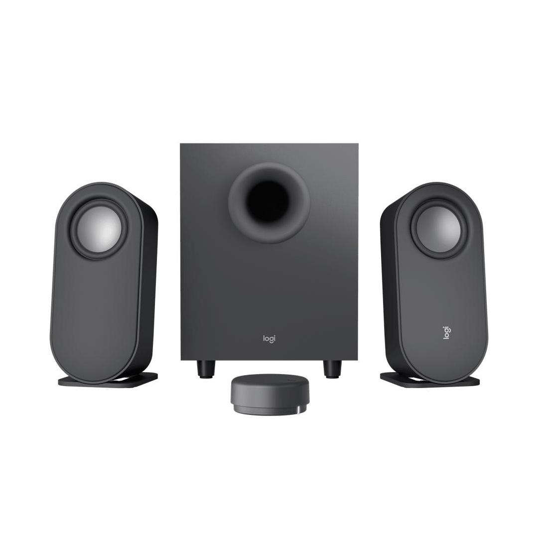 Logitech Z407 Bluetooth computer speakers with subwoofer. Audio output channels: 2.1 channels, RMS rated power: 40 W, Recommended usage: Universal. Satellite speakers RMS power: 10 W, Satellite speaker dimensions (WxDxH): 93 x 85 x 199 mm, Satellite speaker weight: 389.6 g. Subwoofer RMS power: 20 W, Subwoofer dimensions (W x D x H): 234 x 180 x 240 mm, Subwoofer weight: 2.45 kg. Power source: AC, Power plug type: Type C. Cables included: AUX