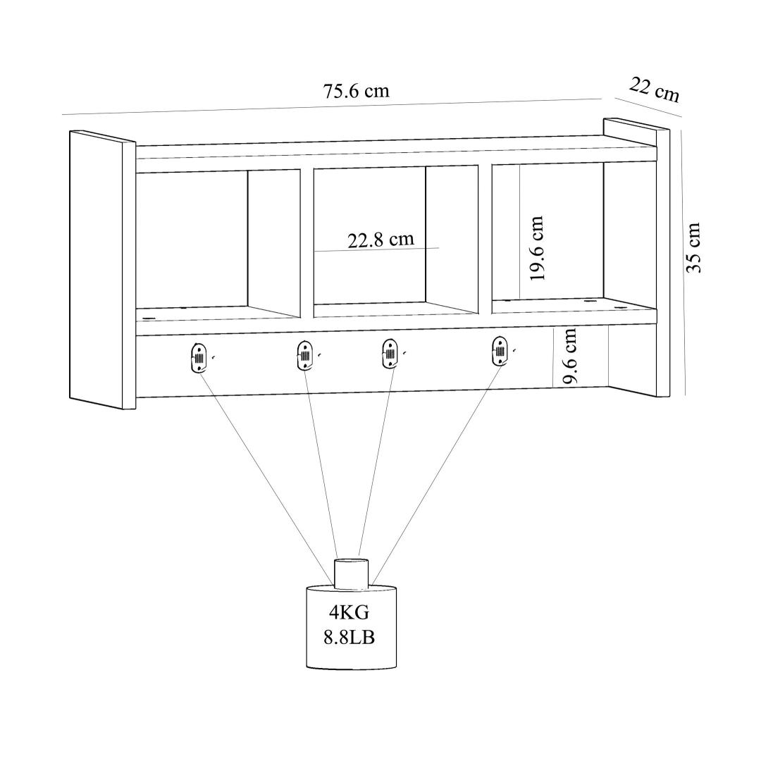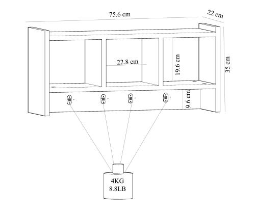 Width: 75,6 cm Height: 35 cm Depth: 22 cm