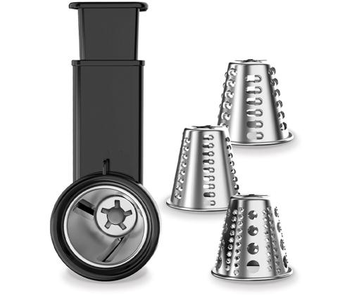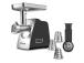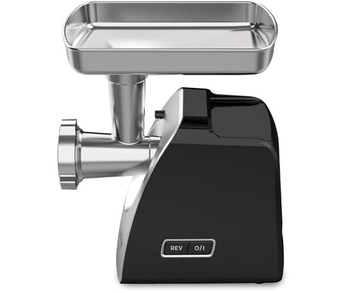 • Peak power 1800 W • 3 stainless steel discs for fine, medium and coarse grinding • Rotary grater/slicer attachment with interchangeable cone drums (for veg, cheese, etc.) • On/off and reverse mode buttons • Large stainless steel feed chute and tray • Sausage attachment for homemade sausages • Easy-to-clean plastic housing • Non-slip rubber feet for stability • Automatic safety switch