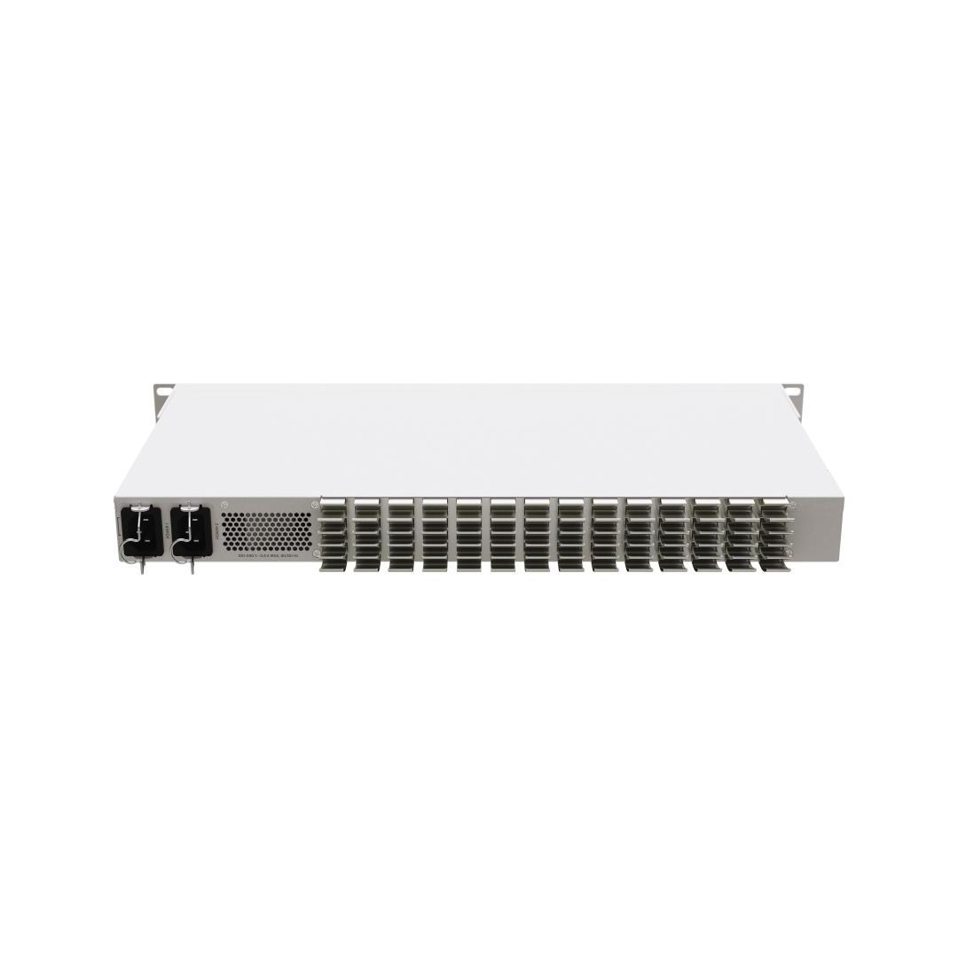 Unit Net Weight 3.92 kg More offices, studios, and other professional environments are making the switch to the fast and reliable 2.5 Gigabit standard. So we wanted to create an affordable solution that could be at the heart of this everchanging landscape, making your life easier, saving your budget, and offering extra flexibility with excellent port-density and additional ultra-fast fiber interfaces. The new CRS326 offers all that and even more! There are 20x 2.5 Gigabit Ethernet ports, 4x COMBO ports that can either be used as 4x additional 2.5 Gigabit Ethernet ports OR as 10G SFP+ interfaces, and on top of all that – there are 2x 40 Gigabit QSFP+ cages for ultra-fast fiber connectivity. Practical and future-proof! The mighty Marvell Prestera switch-chip that comes with a dedicated CPU can handle all your daily tasks without breaking a sweat. VLAN’s, Jumbo frames, link aggregation, ACL rules… You can even do some Layer3 routing! Dual-redundant power supplies and an extra 100 Mbps Ethernet port for management purposes will save you a lot of troubles in the long run. And we’ve included everything you need to secure this marvelous switch in a standard 19” rackmount! Like many MikroTik devices, this one was born out of necessity. Our video team needed a fast, costeffective solution that would enable them to connect all the studio devices without the need for a dedicated rack – the studio has no extra space. They use the 2.5 Gigabit Ethernet ports to connect all the equipment, computers, extra screens and recorders, and so on. Then the four combo ports go to other departments in case they need to transfer some footage for review. One 40 Gigabit line goes to the NAS media server and another 40 Gigabit line goes to the editor’s multimedia station where all the magic happens. This is a wirespeed switch, so the team can get maximum speed on all the ports and make all the videos so much faster.