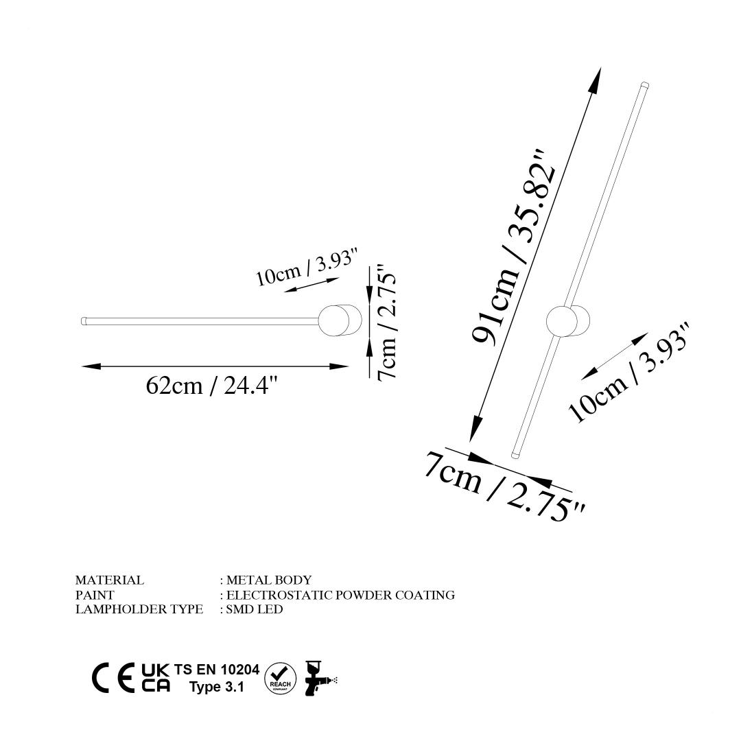 Muunna tilasi kauniilla kultaisella seinävalaisimellaOletko kyllästynyt tylsiin vanhoihin seiniin kodissasi? Haluatko lisätä tilaan eleganssia ja hienostuneisuutta? Älä katso kauemmas kuin kauniin kultaisen seinävalaisimemme. Tämä upea kappale muuttaa minkä tahansa huoneen hetkessä ylelliseksi turvapaikaksi, jättäen sinut ja vieraasi ihastumaan.Korosta sisustustasi ripauksella kultaaKultaisessa seinävalaisimessa on tyylikäs, moderni muotoilu, joka sulautuu vaivattomasti mihin tahansa sisustustyyliin. Sen metallirunko säteilee ylellisyyttä ja loistoa, joten se on täydellinen statement-osa kotiisi. Kaunis kultainen väri lisää lämpöä ja rikkautta luoden todella lumoavan ilmapiirin.Valaise tilasi tyylillä ja tehokkuudellaKultainen seinävalaisin ei ainoastaan paranna huoneesi estetiikkaa, vaan tarjoaa myös poikkeuksellisen valaistuksen. LED-tekniikka tarjoaa kirkkaan ja energiatehokkaan valaistuksen, jonka avulla voit luoda täydellisen tunnelman mihin tahansa tilaisuuteen. Halusitpa sitten luoda viihtyisän ja intiimin ympäristön tai valoisan ja eloisan tilan, tämä valaisin kattaa kaikki tarpeesi.Tekniset tiedot:Metallirunko, jossa on kultainen viimeistely ylellisen ulkonäön aikaansaamiseksiSaatavana kahdessa koossa: 91 cm x 10 cm x 7 cm ja 62 cm x 10 cm x 7 cmLED-lampun tyyppi, valittavissa 13W ja 8W tehokasta valaistusta vartenJalustan halkaisija 7 cm ja korkeus 10 cm vakauden takaamiseksiIP20-luokitus turvallisuuden ja kestävyyden lisäämiseksiLampun pistorasiatyyppi. Lisää eleganssia ja hienostuneisuutta kotiisi jo tänään! Väri: Kulta