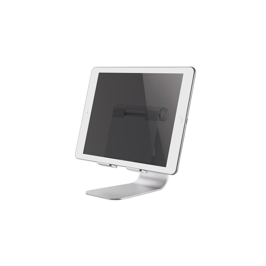 Neomounts by Newstar DS15-050SL1 on jalusta älypuhelimille ja tablet-laitteille, joiden koko on enintään 11 tuumaa. Älykkään kallistusmahdollisuuden (90°) ansiosta jalusta voidaan muuttaa ihanteelliseen katselukulmaan. Tablettiteline on ihanteellinen handsfree-videopuheluihin, elokuvan katseluun tai pelin pelaamiseen. Avoimen kokoonpanon ansiosta latausporttiin pääsee käsiksi, ja latausjohdot voidaan ohjata jalustan takaosaan. kevyen ja kompaktin rakenteen ansiosta jalusta on ihanteellinen ottaa mukaan minne tahansa. Liukumista estävät silikonityynyt ja turvakiskon pysäytin takaavat tabletin tukevan asennon.