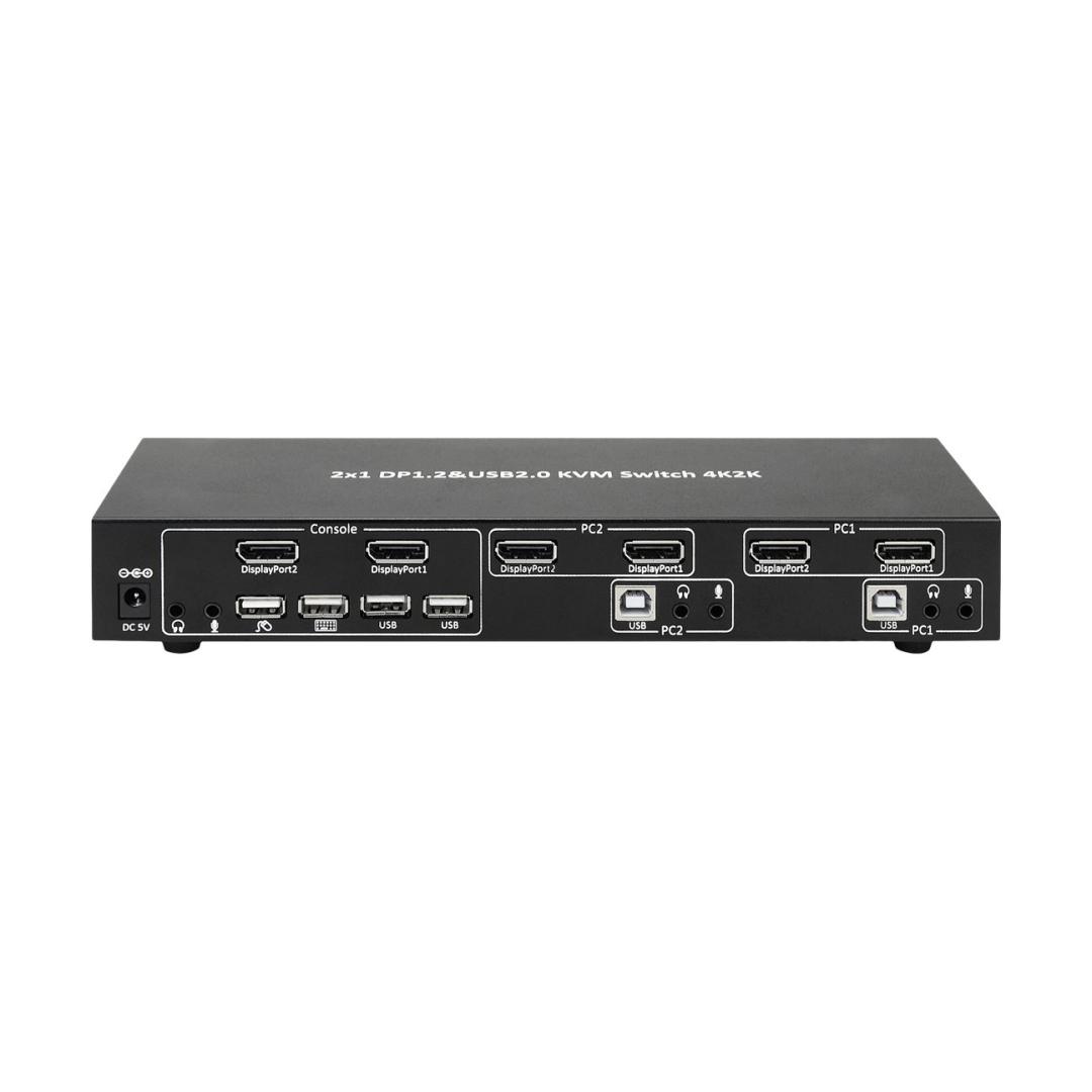 TECHLY 101928 Techly 2-porttinen DisplayPort/USB kaksoismonitorin KVM-kytkin 2x1, jossa on ääni