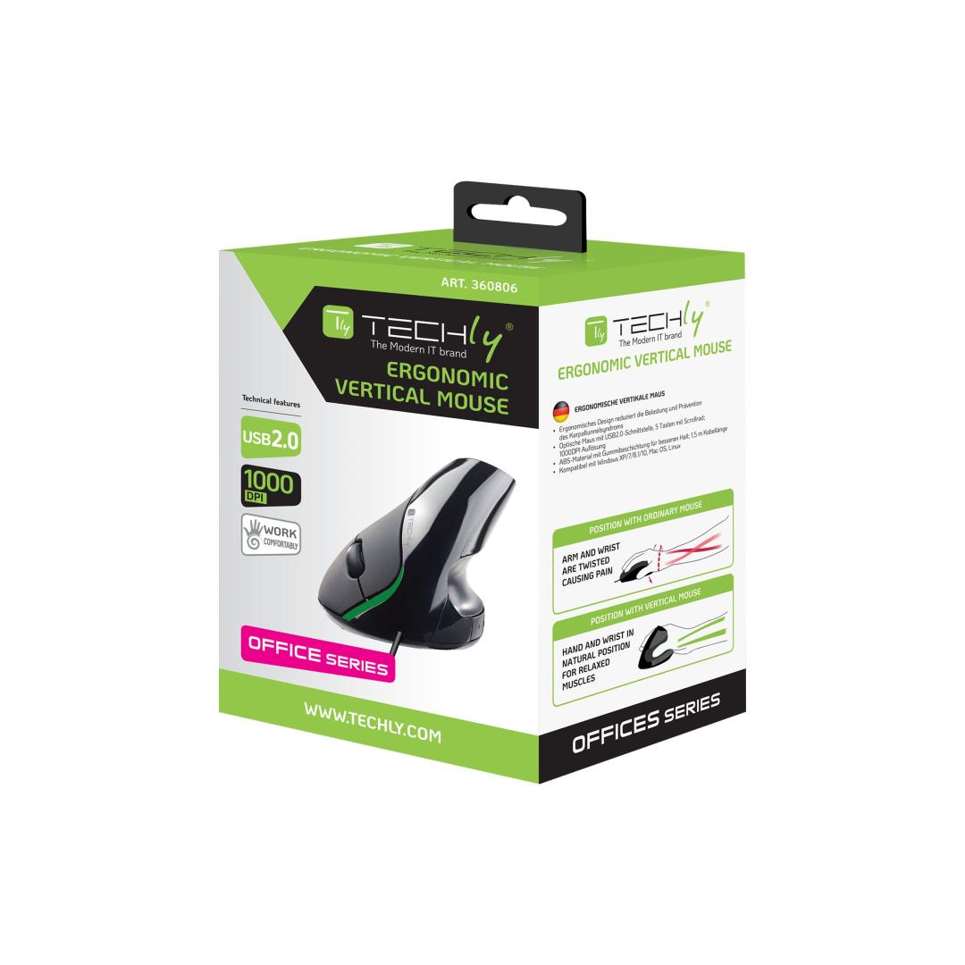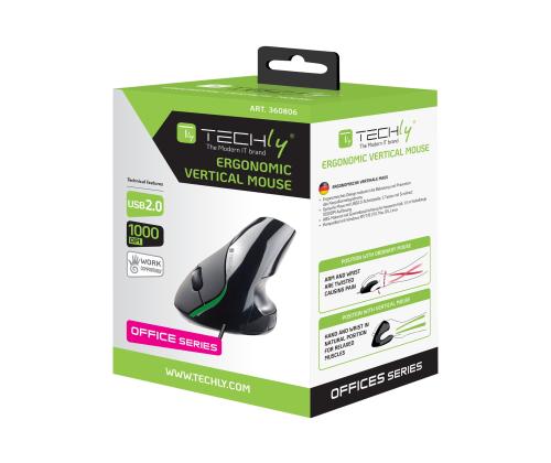 TECHLY USB Ergonomic Vertical Mouse 1000dpi Black TECHLY USB Ergonomic Vertical Mouse 1000dpi Black