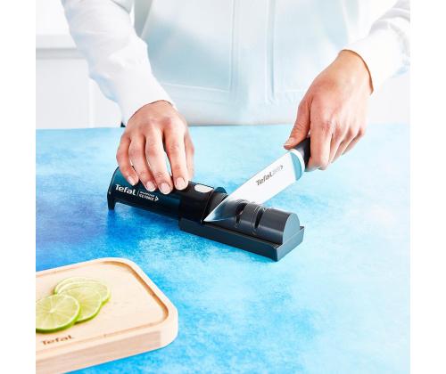 The Tefal Ice Force 3-slot retractable sharpener is a kitchen essential, to easily maintain and repair stainless steel knives for optimal cutting performance. Start with slot 1, where diamond rods repair and straighten blades to reshape cutting edge, then move to slot 2, where a Japanese ceramic grinding wheel further straightens & polishes blades, finish with slot 3, where Ceramic rods remove any remaining burrs.
