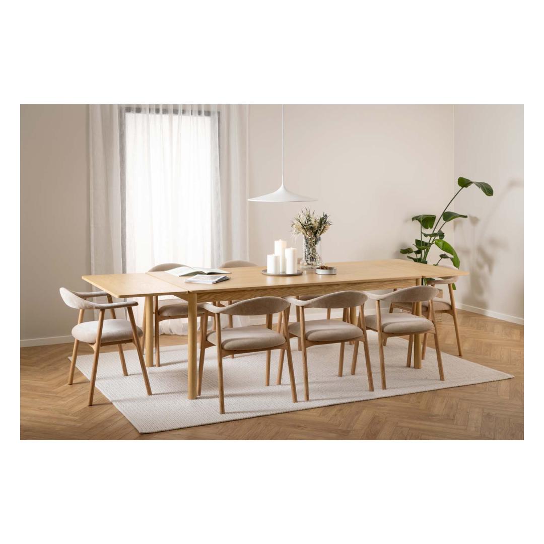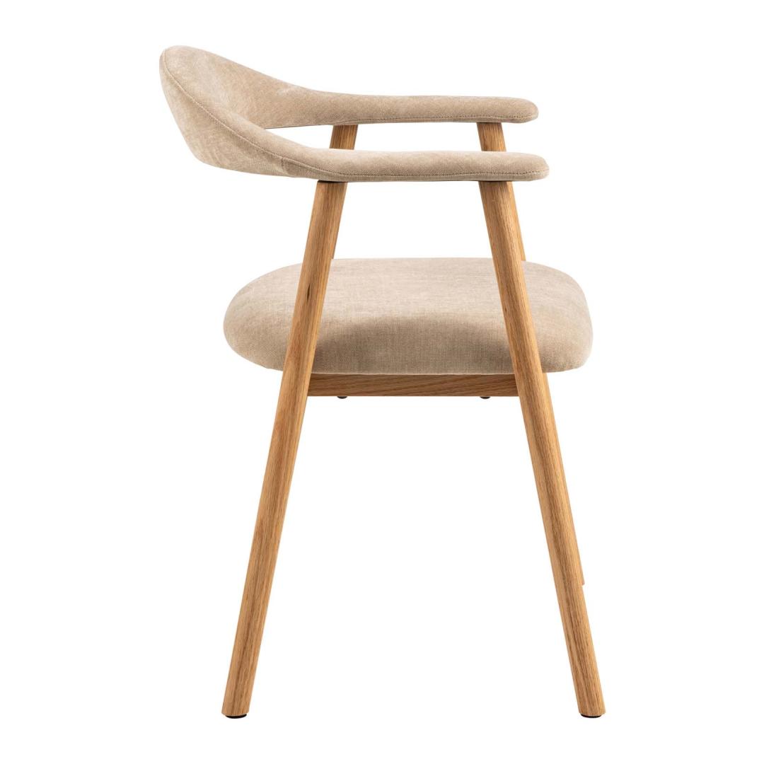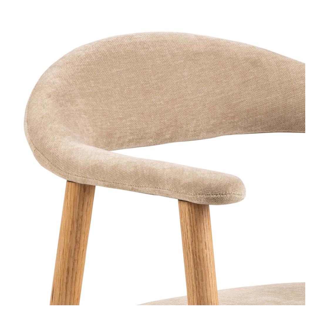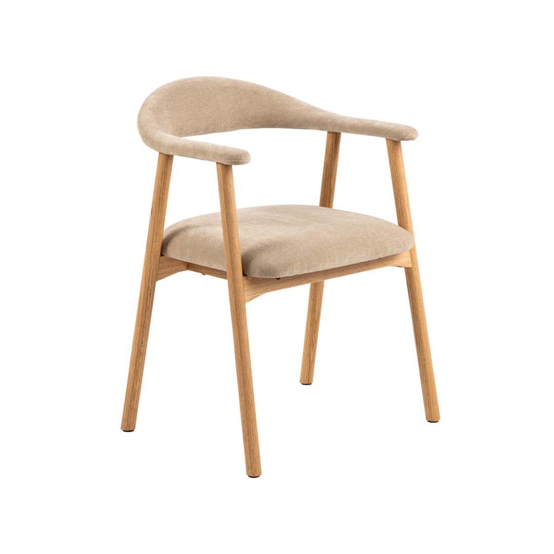 Tuolissa on moderni pohjoismainen tunnelma. Tuolille on ominaista sen kevyt muoto ja puhdas estetiikka. Tuolissa on käsinojat ja avoin selkänoja. Öljykäsitelty runko tuo lämpöä huoneeseen ja luo kodikasta tunnelmaa. Beigeen chenille-kankaalla verhoiltu pehmeä istuinosa lisää tyylikkyyttä. Kangas: 100 % polyesteriä, Martindale > 40 000. Jalat: lakattu tammi. Tuotteen mitat 56x54xK75,5cm.