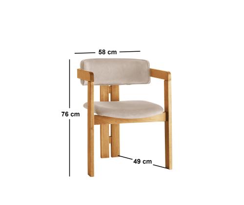 Koge võrratut mugavust ja elegantsi meie tammepuust ja beežist tooligaMuuda oma eluruum stiili ja luksuse paradiisiks meie suurepärase tamme ja beeži tooliga. See ülima täpsusega ja detailidele tähelepanu pöörates valmistatud tool on loodud pakkuma teile võrratut mugavust ja elegantsi. Olenemata sellest, kas lõõgastute pärast pikka päeva või võõrustate külalisi, on see tool täiuslik täiendus teie koju.Lõbutsege sametkanga külluslikkusesSelle tooli iste ja seljatugi on polsterdatud luksusliku sametkangaga, mis lisab teie eluruumile külluslikkust. Kanga pehme ja pehme tekstuur paneb teid tundma end nagu kuninglik, samas kui tugev vineerist raam tagab vastupidavuse ja pikaealisuse. Välistage oma sisekujundust tammepuu ja beeži värvi aegumatu iluga.Toolile on omane tamme- ja beeživärvide uimastav kombinatsioon, mis lisab igasse tuppa elegantsi. Tammepuust raami loomulik ilu täiendab neutraalset beeži kangast, luues ajatu ja elegantse välimuse, mis ei lähe kunagi moest välja. Tehnilised üksikasjad:Raam: 100% PUUIste ja seljatugi: SAMETKANGAS / VINEERLaius: 58 cmKõrgus: 76 cmSügavus: 49 cm (1 tk)kandevõime: 185 kgTooli kaal: 8. 6 kgIstme kõrgus: 43 cmSeljakõrgus: 34 cmIstme laius: 47 cmSelja laius: 51 cmHellitage ülimat mugavust ja stiili meie tamme ja beeži värvi tooliga. Ärge jätke kasutamata võimalust muuta oma elutuba luksuslikuks puhkepaigaks. Tellige kohe ja kogege erinevust ise! Värv: Oak Beige