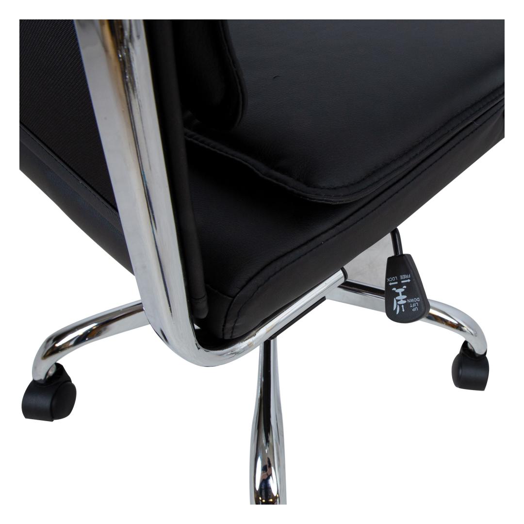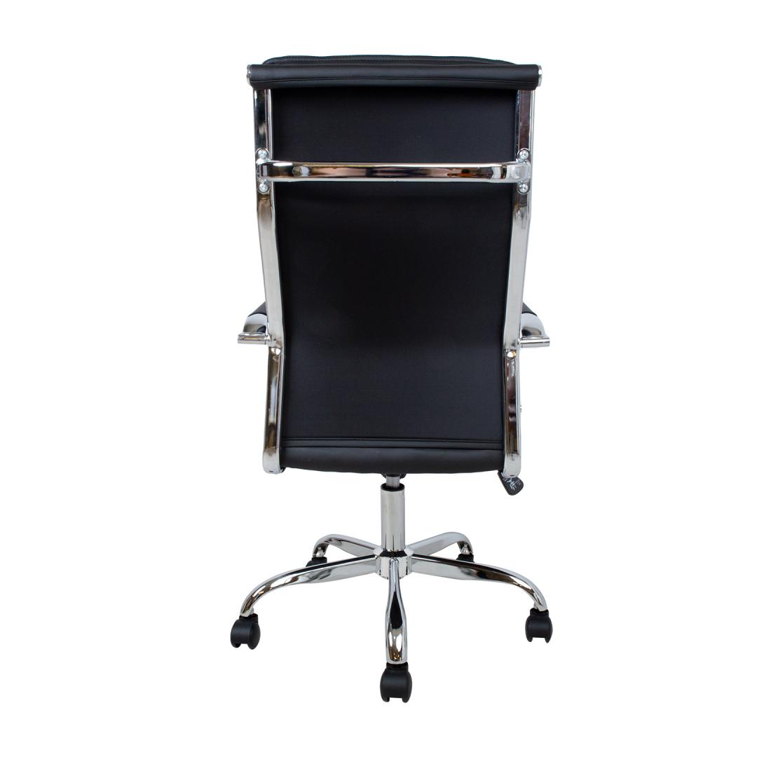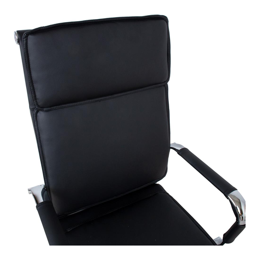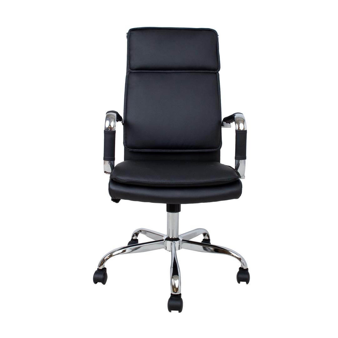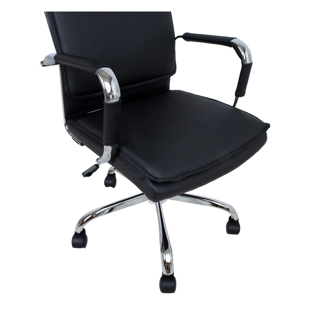 Task chair ULTRA, black artificial leather. The seat and back of the chair are covered with black artificial leather. The chair has a swing mechanism and pneumatic seat height adjustment. The chromed armrests have artificial leather covers. The chair has a 5-prong chromed footrest R32cm and plastic castors D50mm. The overall dimensions of the chair are 54,5x60xH106,5-116,5cm, the width of the seat is 46,5cm, the depth of the seat is 47,5cm. The width of the backrest is 45,5cm, the height of the backrest is 66cm. Weight limit 100kg.