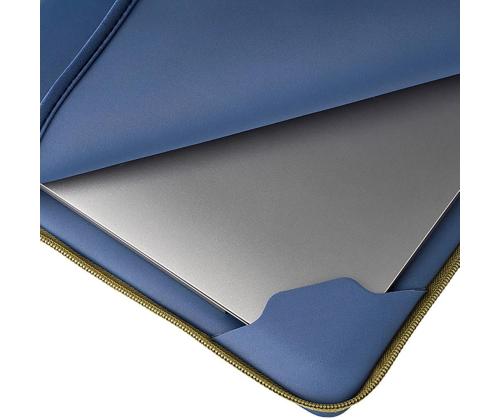 • Made with material partially produced from recycled plastic • 4 mm thick neoprene for impact and scratch protection • Two compartments for laptop or tablet and accessories • Anti-Slip-System band to secure the laptop • Non-slip corner flaps for added stability