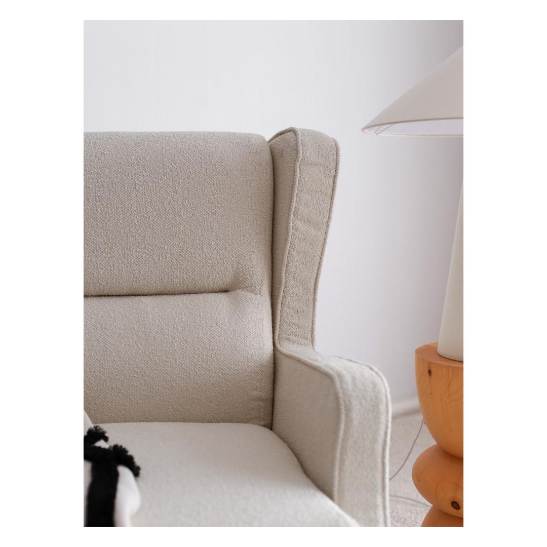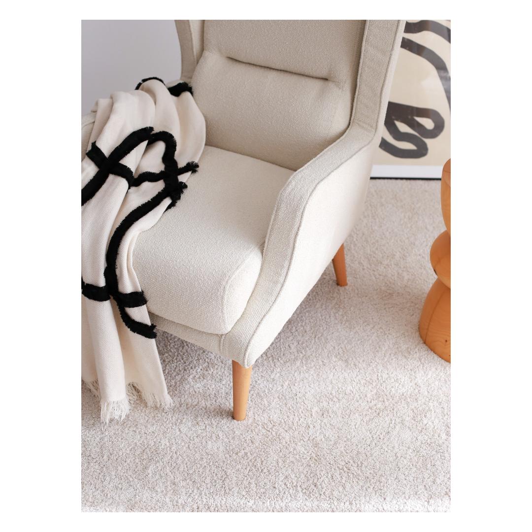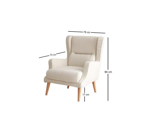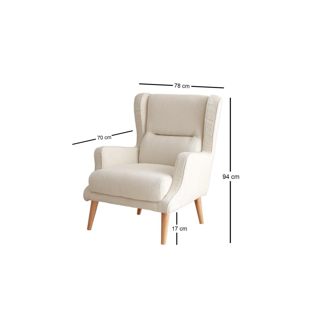Naudi luksust ja mugavust meie erakordse Wing Chair'iga, mis on valmistatud 100% puidust raamist ja pehmest Teddy kangast. See tool ei ole lihtsalt mööbliese, vaid elegantsi ja rafineerituse väljendus.Kogege Ükskõik Millist MugavustLangetage end sügavale selle Wing Chair'i pehmusesse ja laske kõigil oma muredel sulada. 30 DNS ja 24 DNS sule täidis pakub ideaalset tasakaalu toe ja pehmuse vahel, muutes selle ideaalseks kohaks lõõgastumiseks pärast pikka päeva.Tõstke Oma Kodu KaunistusLisage oma eluruumile luksuse puudutus kreemivärvi Wing Chair'iga. Selle ajatu disain ja klassikaline värv teevad sellest mitmekülgse mööblieseme, mis sobib igasuguste sisustustüüpidega, alates modernsest kuni traditsioonilise.Kvaliteetne KäsitööIga detail selle Wing Chair'i juures on hoolikalt viimistletud täiuslikkuse saavutamiseks, alates tugevast puidust raamist kuni elegantsete jalgadeni, mis tõstavad tooli ideaalsele kõrgusele. Saate usaldada selle eseme vastupidavust ja pikaealisust.Tehnilised Andmed:Raam: 100% puidustKangas: TeddyLaius: 78 cmKõrgus: 94 cmSügavus: 70 cmIstu kõrgus: 43 cmJalgade kõrgus: 17 cmTäidis: 30 DNS 10 cm / 24 DNS sule 5 cmVärv: Kreem Värv: Cream