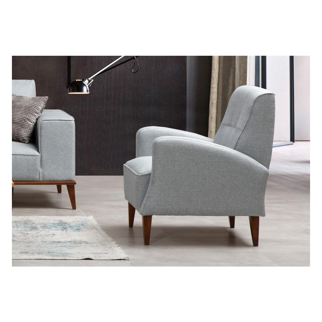 Crafted with precision, our Wing Chair boasts a sturdy frame made of high-quality Beech Wood and Chipboard. The walnut wooden legs add a touch of sophistication, elevating the overall aesthetic of the chair. The 100% Polyester fabric in a stunning shade of grey exudes timeless elegance, making it a perfect fit for any interior style.