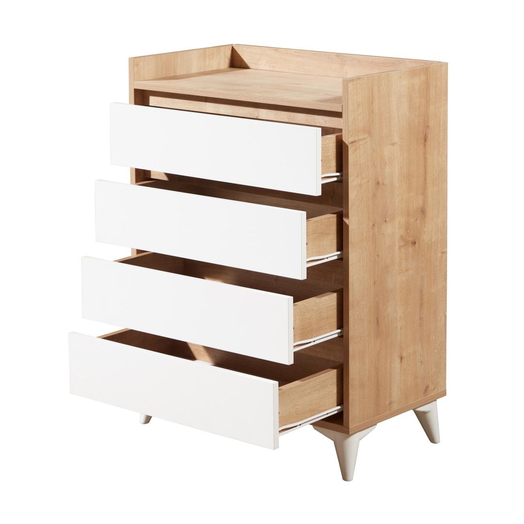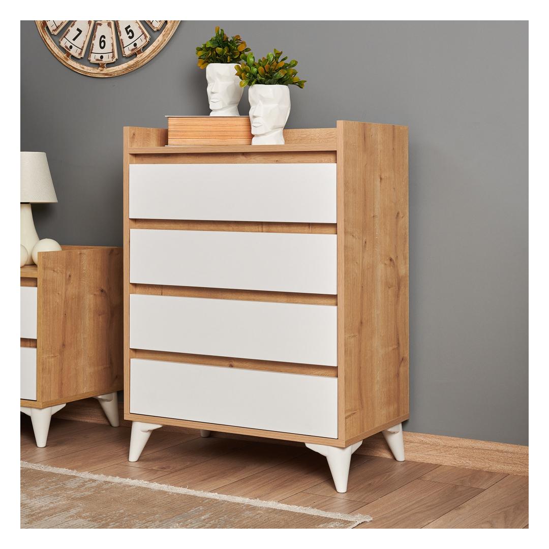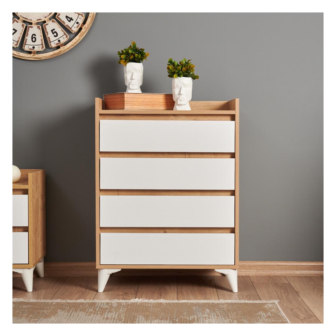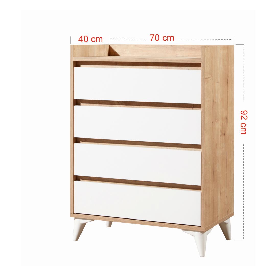 Muunna makuuhuoneesi upealla safiiritammella varustetulla vaatekaapillaOletko kyllästynyt sotkuisiin huoneisiin ja järjestämättömiin laatikoihin? päivitä makuuhuoneesi upealla safiiritammesta valmistetulla vaatekaapilla, joka on suunniteltu tuomaan eleganssia ja toiminnallisuutta asuintilaasi. Nosta tyyliäsi yksivärisellä ja modernilla muotoilullaTämä yksivärinen ja modernisti muotoiltu kaappi on täydellinen lisä mihin tahansa nykyaikaiseen makuuhuoneeseen. Safiiritammi-pinnoite lisää hienostuneisuutta, kun taas tyylikkäät valkoiset aksentit luovat näyttävän kontrastin.Koe vertaansa vailla oleva kestävyys ja laatu100% melamiinipintainen lastulevyn kaappi on rakennettu kestämään. 18 mm:n paksuus takaa kestävyyden, ja kaapin 0,8 mm:n reunanauhat antavat lisäsuojaa kulumista vastaan. Helpompi kokoonpano minifix-järjestelmän avullaEllei monimutkaisia kokoonpano-ohjeita ja turhauttavaa huonekalujen kokoamista. Sapphire-tammikaappimme on helppo koota innovatiivisella minifix-järjestelmällä, jonka ansiosta voit nauttia uusista huonekaluistasi hetkessä. Runsaasti säilytystilaa tavaroillesiNeljän tilavan laatikon ja lisävarastotilan ansiosta tämä vaatekaappi tarjoaa runsaasti tilaa pitää vaatteesi, asusteesi ja henkilökohtaiset tavarasi järjestyksessä. 35 cm:n kiskot takaavat sujuvan avautumisen ja sulkeutumisen, ja kitkalukittavat saranat lisäävät käyttömukavuutta. Tekniset tiedot:Materiaali:Materiaali:Materiaali:Materiaali:Materiaali:Materiaali:Materiaali:Materiaali:Materiaali:Materiaali:Materiaali:Materiaali:100 % melamiinipinnoitettua lastulevyäPaksuus:18 mmRungon reunanauhoitus:0,8 mmLeveys:70 cmKorkeus:92 cmKorkeus:40 cmHelppo kokoonpano Minifix-järjestelmän avullaSaranat kitkalukolla35 cm kiskotJalkojen korkeus:12 cm4 laatikkoaLisävarastointitilaaVäri:Sapphire-tammi ja valkoinen Väri: Sapphire Oak White