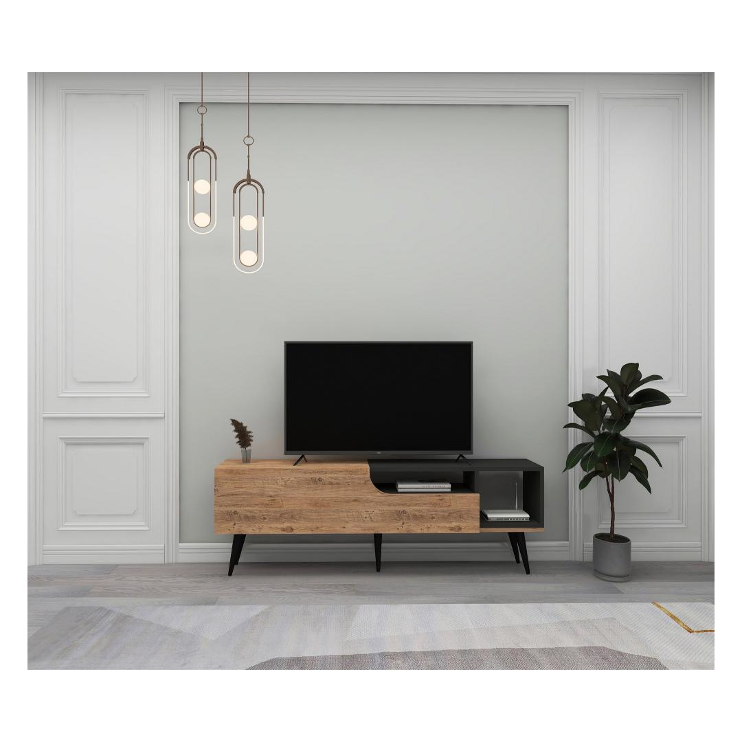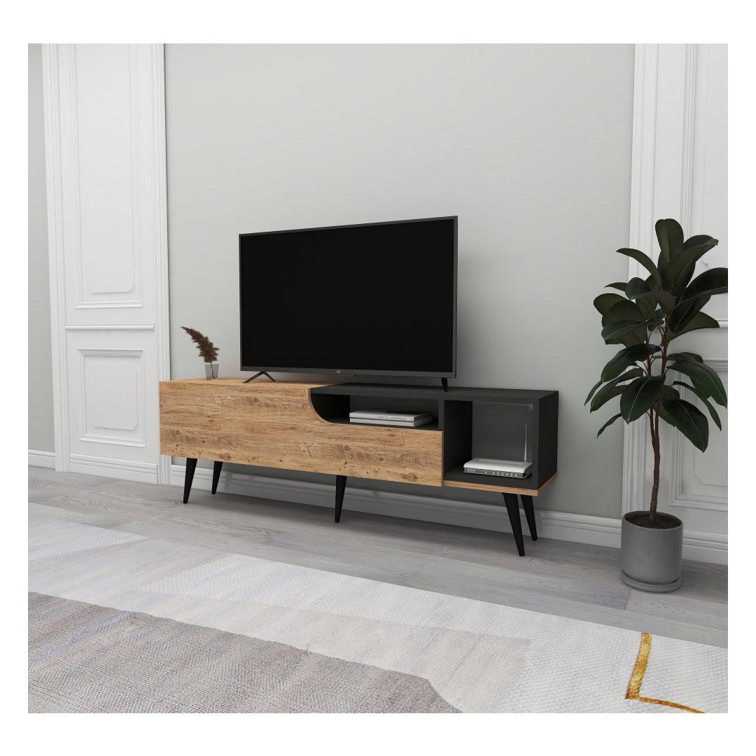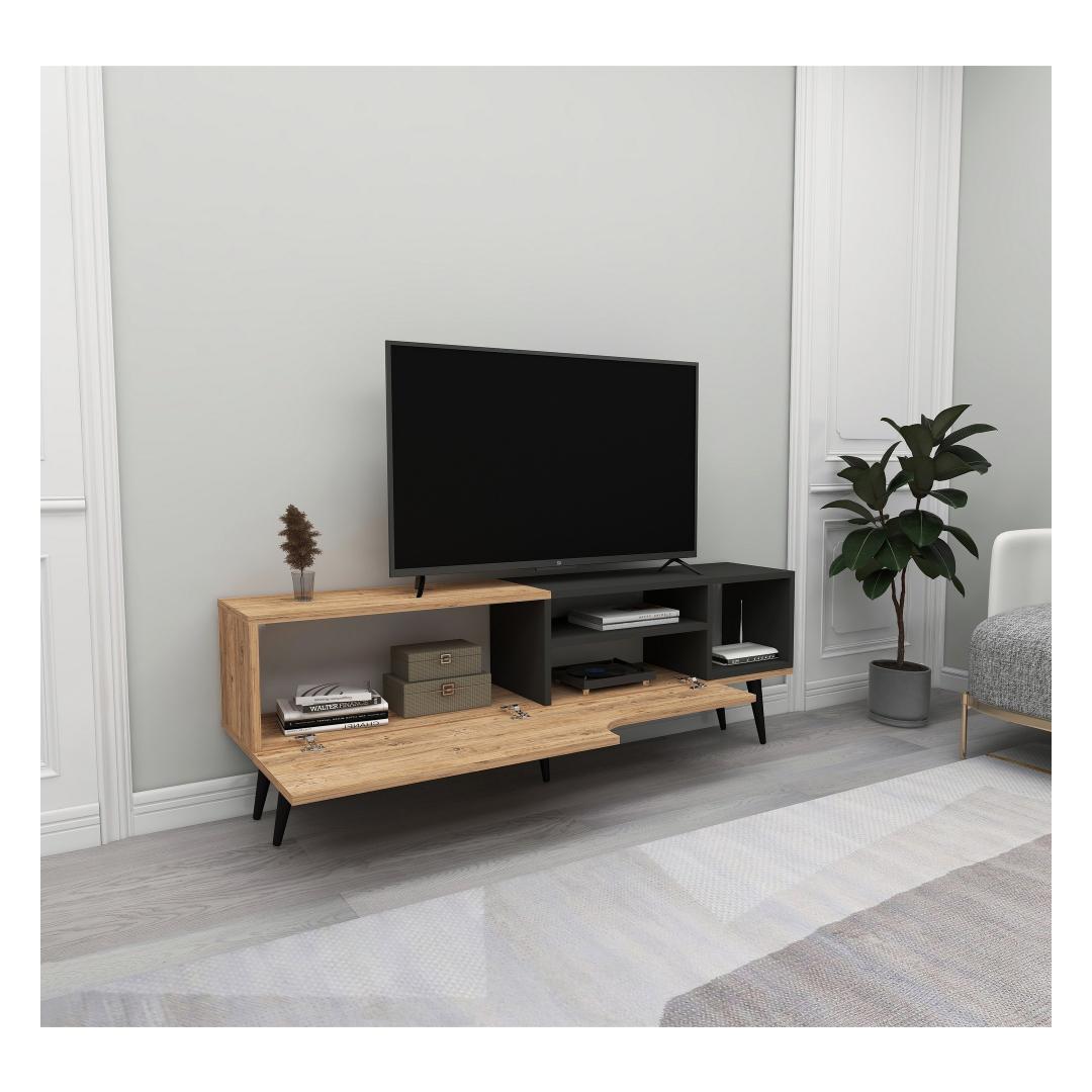 Välistage oma eluruumi stiilse ja funktsionaalse teleripuldigaUuendage oma elutuba meie uimastava teleripuldiga, mis ühendab endas stiili ja funktsionaalsuse. See 100% melamiiniga kaetud puitlaastplaadist valmistatud teleritugi on valmistatud kestma ja taluma igapäevast kulumist. Loo soe ja kutsuv atmosfäärAtlandi männi ja antratsiidi värvide kaunis kombinatsioon lisab igasse ruumi elegantsi. Atlandi männi soojad toonid loovad hubase ja kutsuva atmosfääri, samas kui sile antratsiitvärv lisab kaasaegse ja rafineeritud puudutuse.Rikkalik panipaik teie meelelahutusvajaduste jaoksKõrgus 49,6 cm, laius 150 cm ja sügavus 29,6 cm, see teleripult pakub piisavalt ruumi kõigi teie meelelahutusvahendite jaoks. Sellel stendil on piisavalt ruumi, et hoida kõike korrastatult ja käeulatuses, alates teie dvd-kogust kuni mängukonsoolideni. Kindel ja tugev konstruktsioonSee 18 mm paksusest melamiiniga kaetud puitlaastplaadist valmistatud teleritugi on ehitatud nii, et see peab vastu. See on vastupidav kriimustustele, niiskusele ja kuumusele, tagades, et see jääb puutumatusse seisukorda aastateks. Lihtsa kokkupanek ja hooldusMeie teleripult on mõeldud lihtsaks kokkupanekuks, mis võimaldab teil seda kiiresti üles seada. Lisaks muudab melamiinkate selle hõlpsasti puhastatavaks ja hooldatavaks, nii et saate rohkem aega veeta oma lemmiksaate nautimiseks ja vähem aega hoolduse pärast muretsemiseks. Tehnilised üksikasjad:Materjal: Materjal: Materjal: Materjal: Materjal: Materjal: Materjal: Materjal: materjal: 100% melamiiniga kaetud puitlaastplaatPaksus: 18 mmSuurus: kõrgus: 49. 6 cm, laius: 150 cm, sügavus: 29. 6 cmVärv: Atlandi mänd ja antratsiit Värv: Atlantic Pine Anthracite