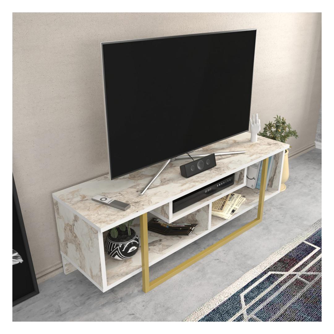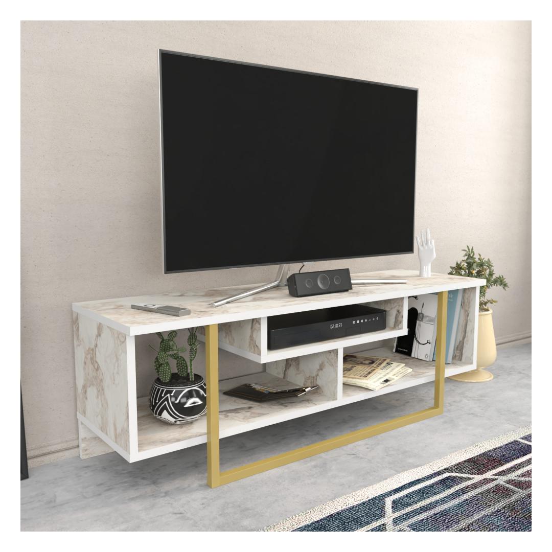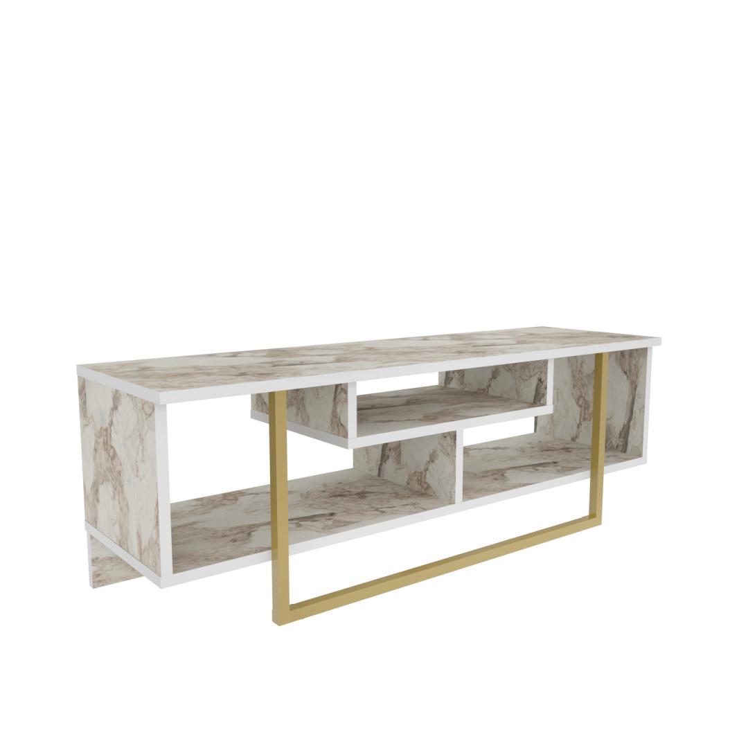 Kõrgendage oma eluruumi glamuurse teleripuldigaMuuda oma elutuba luksuslikuks elupaigaks meie uimastava teleripuldiga. See glamuuri kontseptsiooniga disainitud ese suurendab vaevata iga ruumi elegantsust. Võrratu kvaliteet ja vastupidavusSee 100% melamiiniga kaetud puitlaastplaadist valmistatud teleritugi tagab erakordse kvaliteedi ja vastupidavuse. Paksus 18 mm tagab tugeva ja usaldusväärse konstruktsiooni, mis peab vastu aja katsumusele.Valguse ja kulla silmatorkav kombinatsioonTeleviisoristendil on lummav valge ja kuldse värvi kombinatsioon, mis lisab teie eluruumile külluslikkust. Lihtne valge viimistlus loob moodsa ja rafineeritud välimuse, samas kui kuldsed aktsendid annavad glamuurse ja luksusliku tunde. Rikkalik panipaikLaius 120 cm, sügavus 35. 2 cm ja kõrgus 40 cm. 2cm, pakub see telerialus piisavalt ruumi kõigi teie oluliste meediakanalite jaoks. Avarale pealispinnale mahub suur lameekraaniga televiisor, samal ajal kui avatud riiulid ja kapid pakuvad mugavat hoiukohta teie dvd-mängijale, mängukonsoolidele ja muudele meediaseadmetele. Lihtne kokkupanek ja hooldusMeie teleripult on mõeldud muretuteks kokkupanekuteks, mis võimaldab teil oma uut mööblit kiiresti nautida. Melamiinkate tagab lihtsa puhastamise ja hoolduse, mis hoiab teie teleripuldi aastaid põlise ja särava välimusega. Tehnilised üksikasjad:Materjal: Materjal: Materjal: Materjal: Materjal: Materjal: Materjal: Materjal: materjal: 100% melamiiniga kaetud puitlaastplaatPaksus: 18mmLaius: 120cmSügavus: 35. 2cmKõrgus: 40. 2cmVärv: valge ja kuldneKontseptsioon: Glam Värv: White Gold