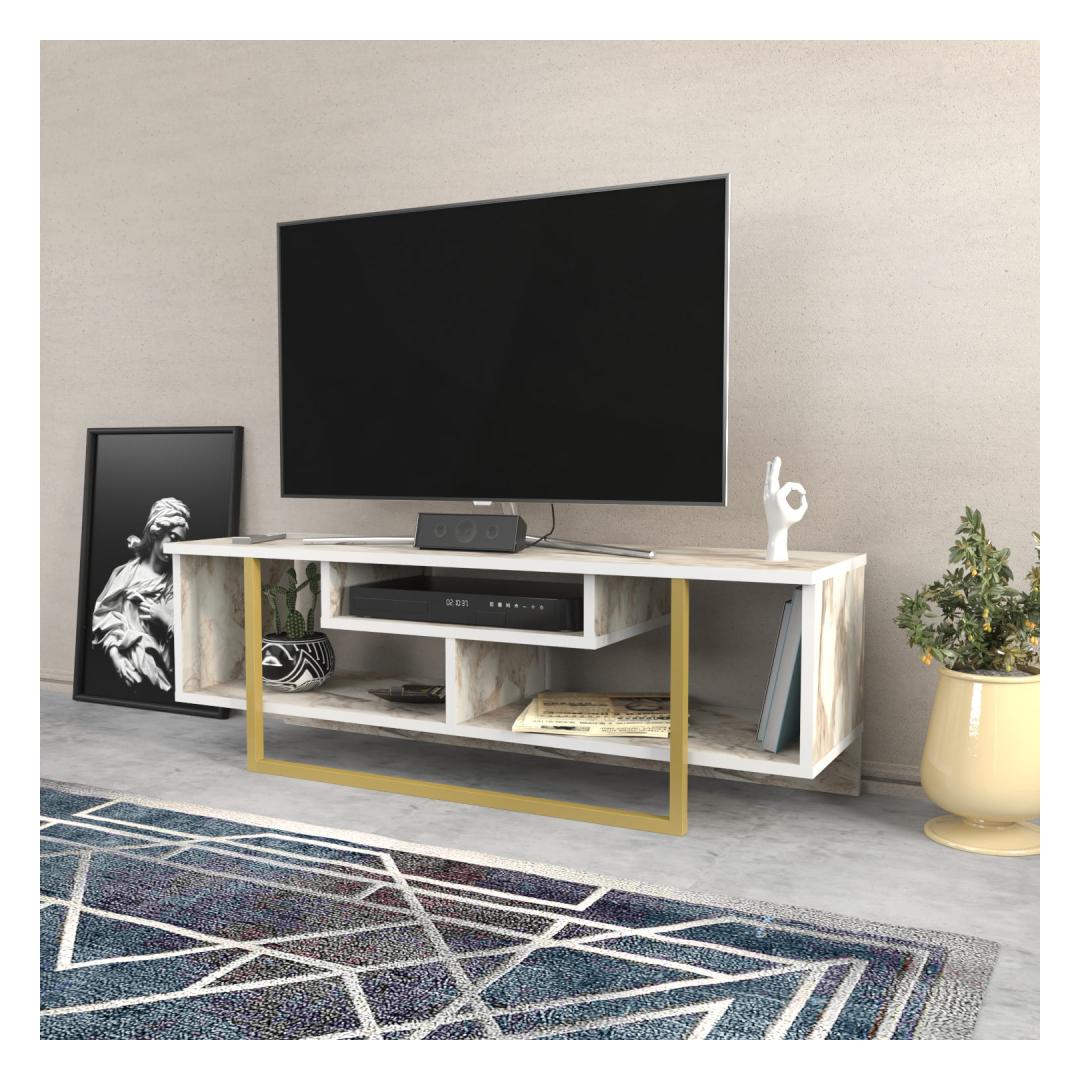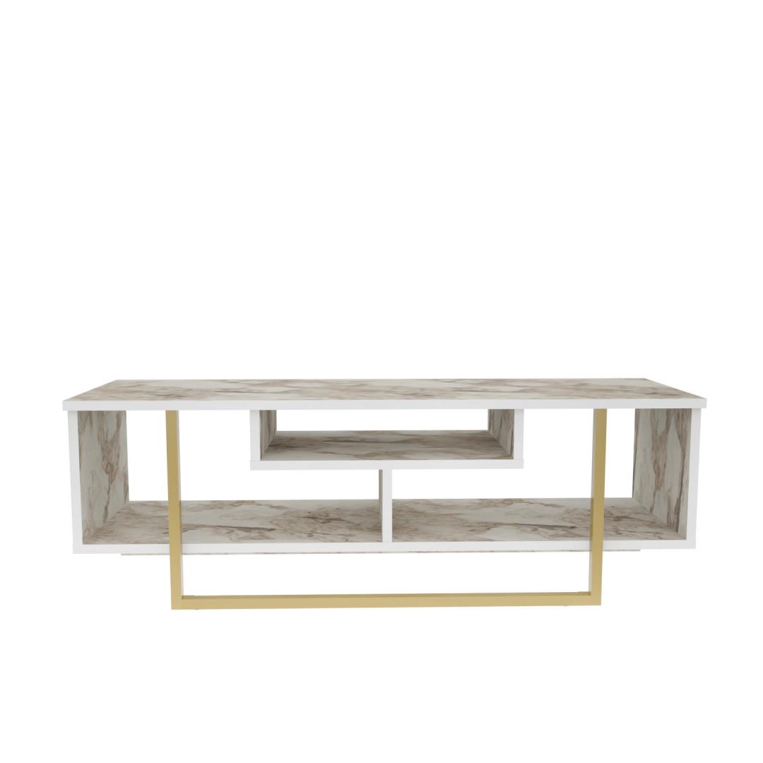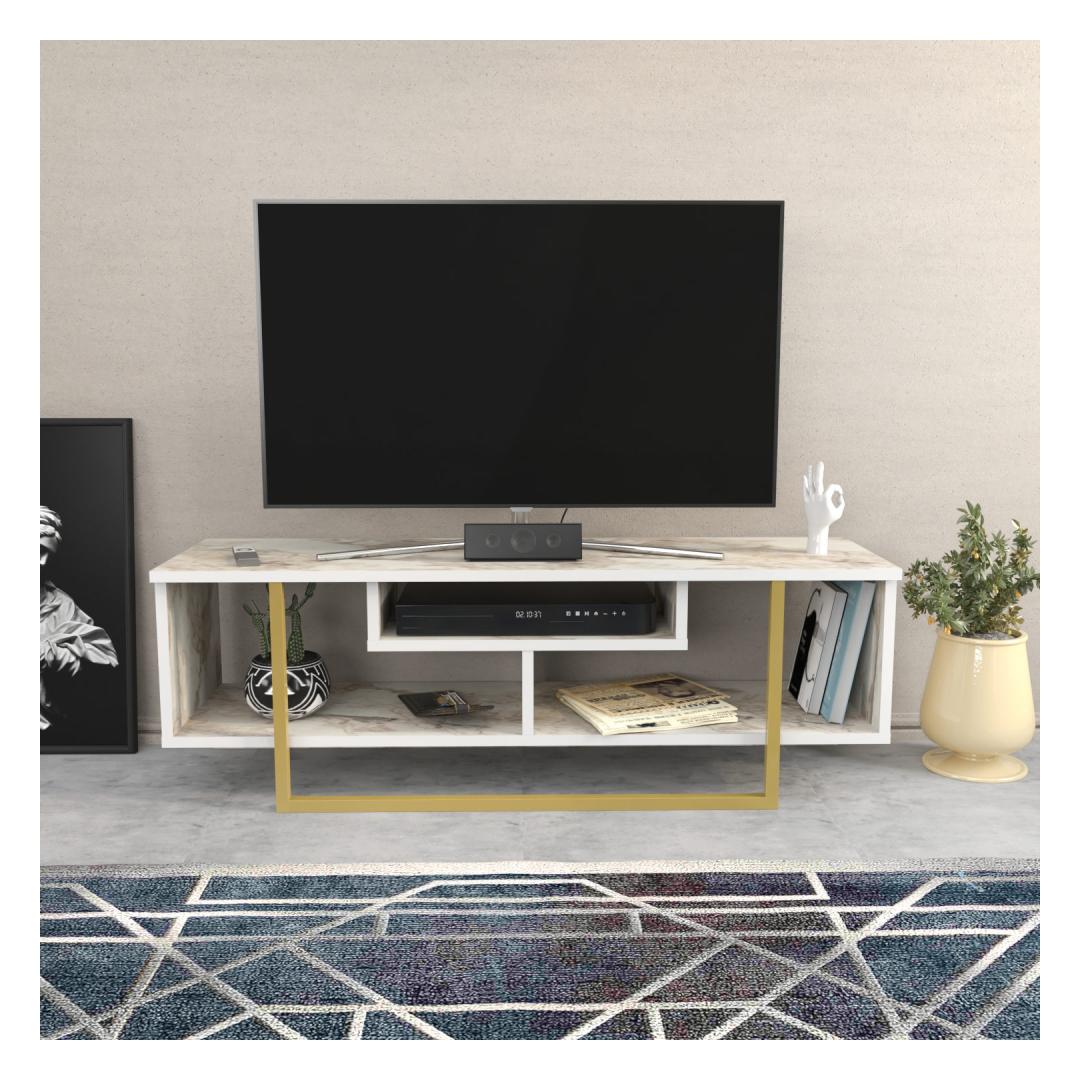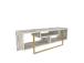Kõrgendage oma eluruumi glamuurse teleripuldigaMuuda oma elutuba luksuslikuks elupaigaks meie uimastava teleripuldiga. See glamuuri kontseptsiooniga disainitud ese suurendab vaevata iga ruumi elegantsust. Võrratu kvaliteet ja vastupidavusSee 100% melamiiniga kaetud puitlaastplaadist valmistatud teleritugi tagab erakordse kvaliteedi ja vastupidavuse. Paksus 18 mm tagab tugeva ja usaldusväärse konstruktsiooni, mis peab vastu aja katsumusele.Valguse ja kulla silmatorkav kombinatsioonTeleviisoristendil on lummav valge ja kuldse värvi kombinatsioon, mis lisab teie eluruumile külluslikkust. Lihtne valge viimistlus loob moodsa ja rafineeritud välimuse, samas kui kuldsed aktsendid annavad glamuurse ja luksusliku tunde. Rikkalik panipaikLaius 120 cm, sügavus 35. 2 cm ja kõrgus 40 cm. 2cm, pakub see telerialus piisavalt ruumi kõigi teie oluliste meediakanalite jaoks. Avarale pealispinnale mahub suur lameekraaniga televiisor, samal ajal kui avatud riiulid ja kapid pakuvad mugavat hoiukohta teie dvd-mängijale, mängukonsoolidele ja muudele meediaseadmetele. Lihtne kokkupanek ja hooldusMeie teleripult on mõeldud muretuteks kokkupanekuteks, mis võimaldab teil oma uut mööblit kiiresti nautida. Melamiinkate tagab lihtsa puhastamise ja hoolduse, mis hoiab teie teleripuldi aastaid põlise ja särava välimusega. Tehnilised üksikasjad:Materjal: Materjal: Materjal: Materjal: Materjal: Materjal: Materjal: Materjal: materjal: 100% melamiiniga kaetud puitlaastplaatPaksus: 18mmLaius: 120cmSügavus: 35. 2cmKõrgus: 40. 2cmVärv: valge ja kuldneKontseptsioon: Glam Värv: White Gold