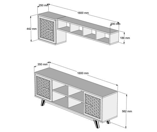 TV Unit Size: Width: 160 cm Height: 56,2 cm Depth: 35 cm
