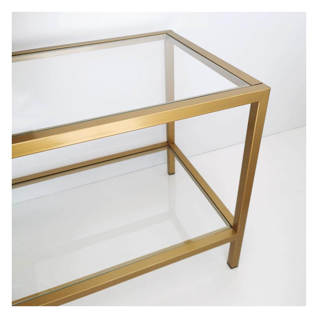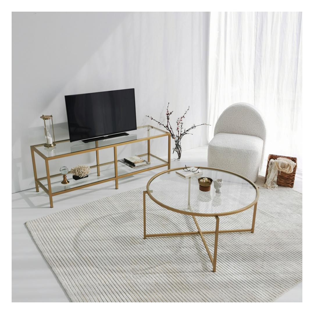 Parandage oma eluruumi kaasaegse ja glamuurse teleripuldigaMuuda oma elutuba luksuslikuks ja stiilseks pelgupaigaks meie moodsa ja uudse teleripuldi abil. See ülima täpsusega valmistatud teleripult on loodud teie ruumi esteetilise atraktiivsuse tõstmiseks, pakkudes samal ajal praktilisi hoiulahendusi. Võrratu elegants ja vastupidavusSee 100% karastatud klaasist valmistatud televiisoripult õhkab elegantsust ja rafineeritust. 4 mm paksune klaas lisab teie elutuppa luksuslikkust, muutes selle ideaalseks keskpunktiks teie meelelahutuskeskuses. Raam, mis on valmistatud 100% metallist, tagab vastupidavuse ja stabiilsuse, tagades, et teie telerialus peab vastu. Rikkalik hoiuruumTänu arvukatele riiulitele pakub see teleripult rohkelt hoiuruumi kõigile teie meediaseadmetele, mängukonsoolidele ja tarvikutele. Hoidke oma elutuba korrastatuna ja segadusteta selle funktsionaalse ja stiilse mööbliesemega. Versatiivne disainMeie teleri statiivi saab hõlpsasti seinale kinnitada, pakkudes teile paindlikkust, et valida oma meelelahutuskeskuse jaoks ideaalne paigutus. Ükskõik, kas eelistate seda eraldi või seinale paigaldatuna, see teleripult kohandub vaevata teie vajadustele ja eelistustele. Tähe glamuuriSee uimastava kuldse värviga teleripult lisab teie eluruumile glamuuri ja külluslikkust. Kuldsed aktsendid täiendavad kaunilt mis tahes sisustusstiili, muutes selle mitmekülgseks täienduseks teie kodu sisustusele. Tehnilised üksikasjad:Toote tüüp: Toode on mõeldud kasutamiseks, kui see ei ole vajalik, kuid see on võimalik: Teleri statiivMaterjal: Materjal: Materjal: Materjal: Materjal: Materjal: Materjal: Materjal: materjal: 100% karastatud klaas, 100% metallist raamPaksus: paksus: 4 mmLaius: 130 cmKõrgus: 45 cmSügavus: 40 cmVärv: KuldneKontseptsioon: Kaasaegne - uudsus, Glam Värv: Gold
