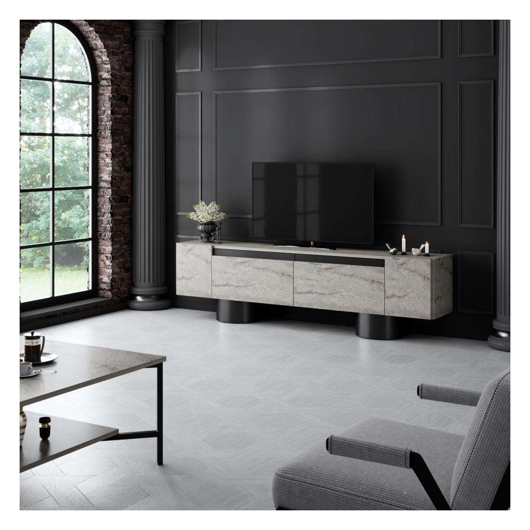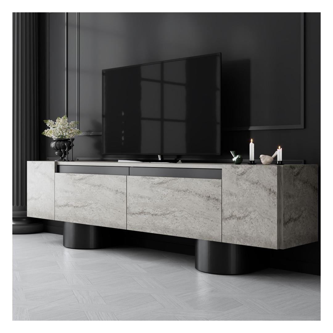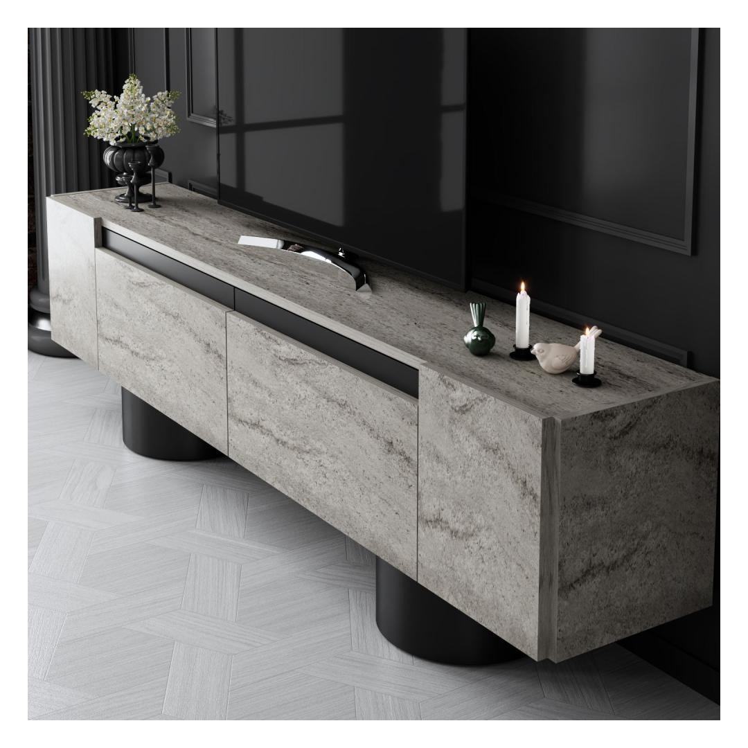 TV Stand Bohem - Travertine, Black